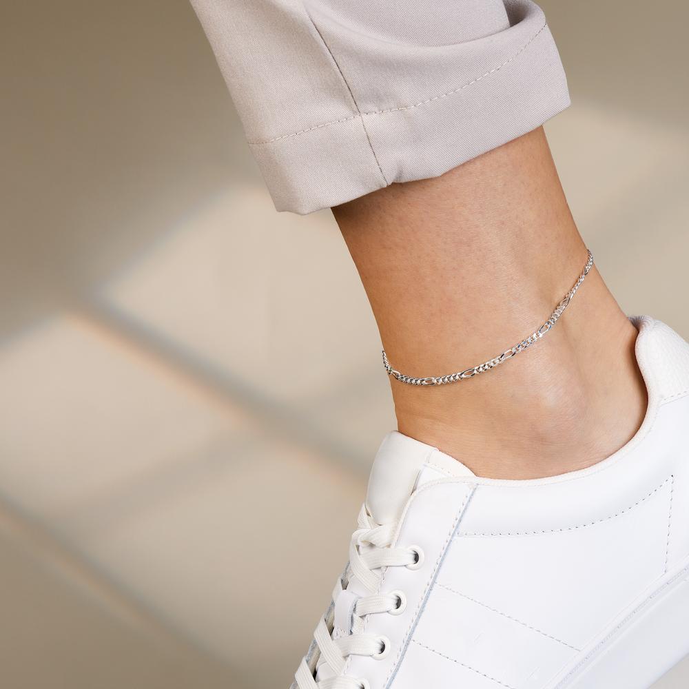 Elegant women's silver anklet featuring a classic link chain design. Crafted from high-quality silver, this delicate yet durable piece adds a touch of sophistication to any outfit. Perfect for casual wear or special occasions, it enhances your style with subtle shimmer and grace.