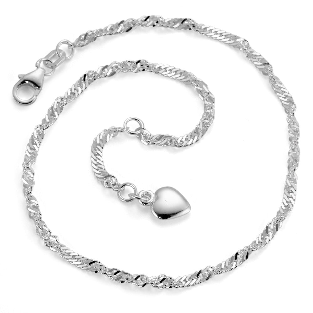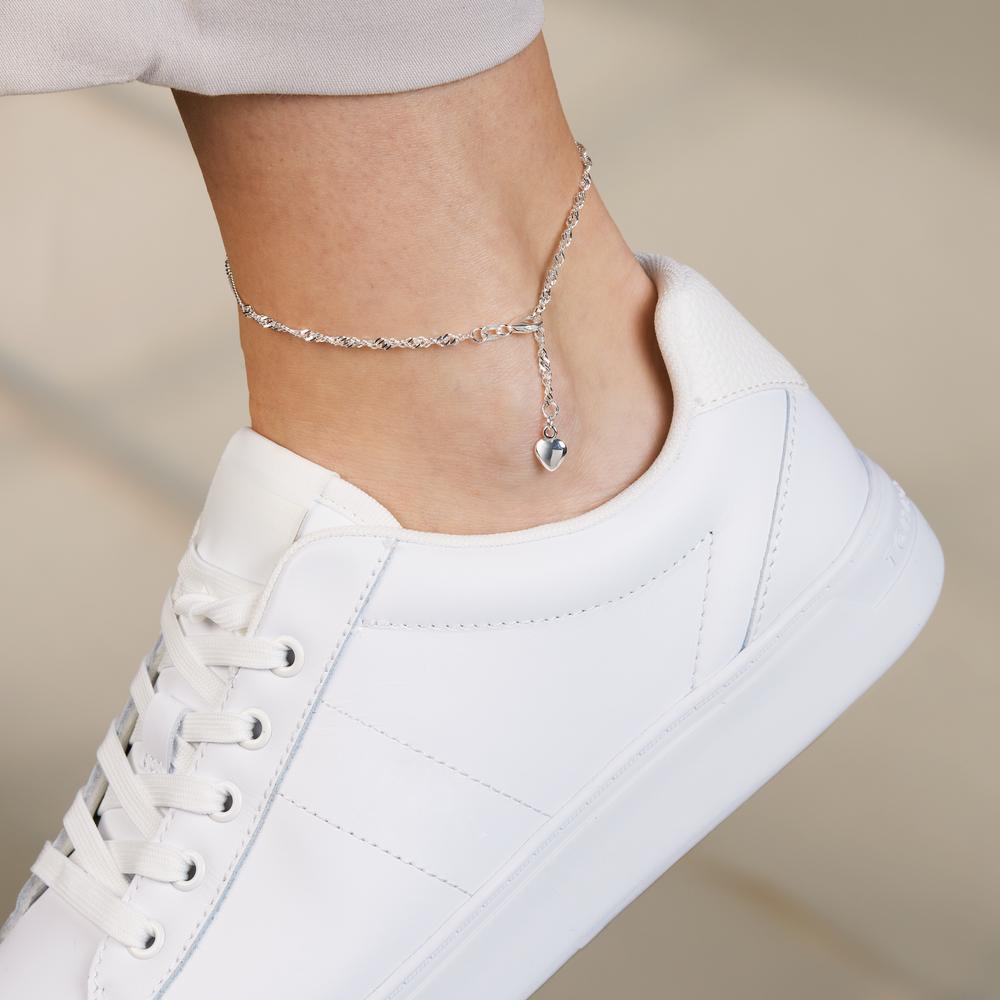 Elegant silver anklet for women featuring a delicate heart charm. Crafted with a stylish chain design, it adds a touch of romance and sophistication to any outfit. Perfect for summer or special occasions, this anklet enhances your look with subtle shine and charm.
