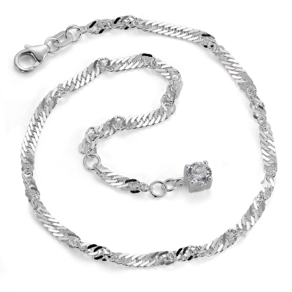 Discover the Singapore ankle bracelet made of silver and adorned with sparkling zirconia. This adjustable piece measures between 23 and 25 cm, ensuring a comfortable fit for everyday wear. Its elegant design adds a subtle touch to your outfit, making it perfect for various occasions. Enjoy a timeless accessory that enhances your style effortlessly.
