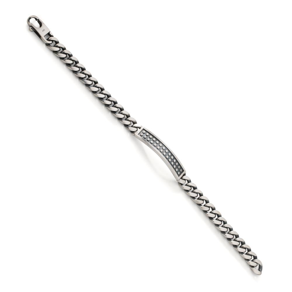 Stylish men's bracelet crafted from durable silver. This bold accessory features a classic curb chain design with a unique dotted detail on the central plate, adding a touch of rugged elegance. Perfect for everyday wear or special occasions, it blends modern and timeless style effortlessly.