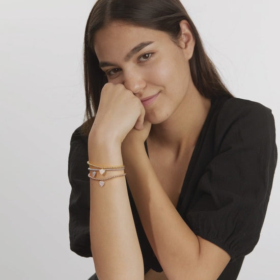 Elegant women's bracelet made of silver-plated beads with a beautiful heart charm encrusted with sparkling zirconia stones. Adjustable length for a perfect fit, this delicate piece adds a touch of shine and romance to any outfit. Ideal gift for special occasions.