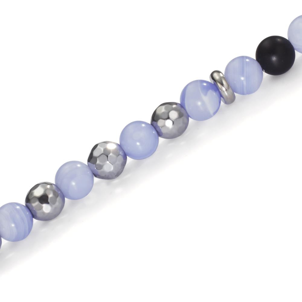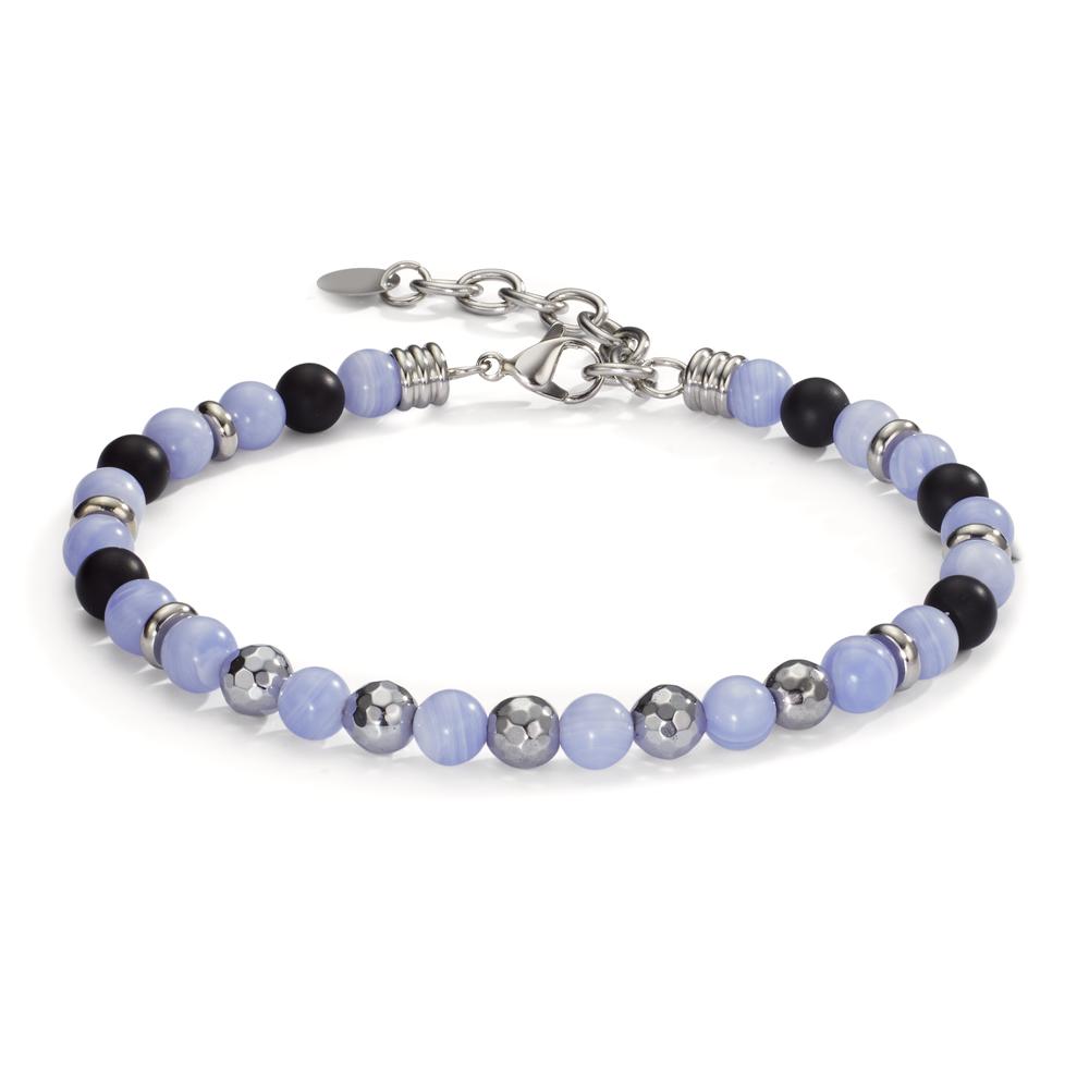 This men's bracelet combines sleek stainless steel with polished blue and black agate beads, creating a modern and stylish accessory. Lightweight yet durable, it features a secure clasp and adjustable chain for a perfect fit. Ideal for everyday wear or special occasions.