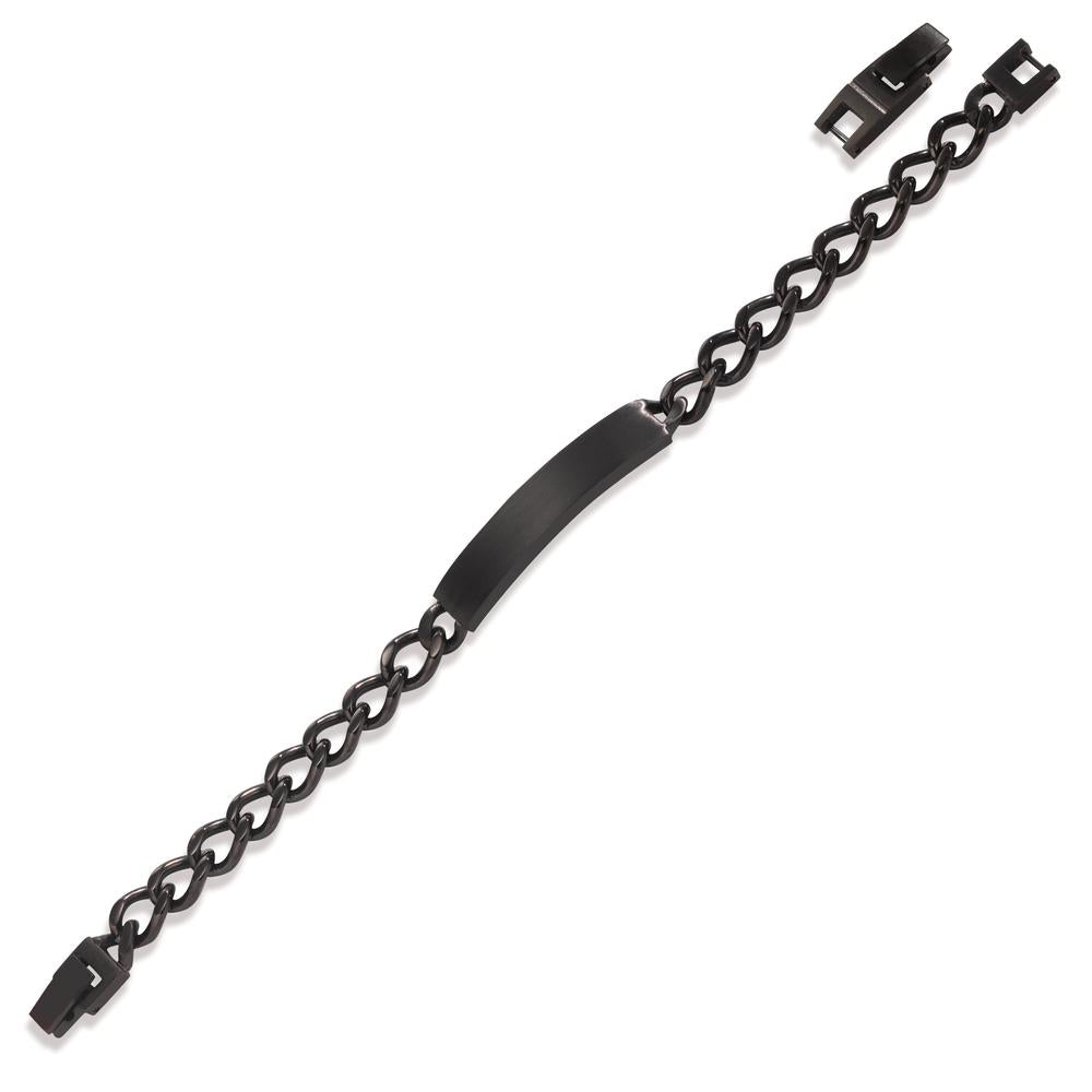 This men's bracelet is crafted from durable stainless steel with a sleek black finish. Featuring a bold chain design and a solid rectangular plate, it offers a modern, masculine style perfect for everyday wear or special occasions. Stylish, sturdy, and timeless.