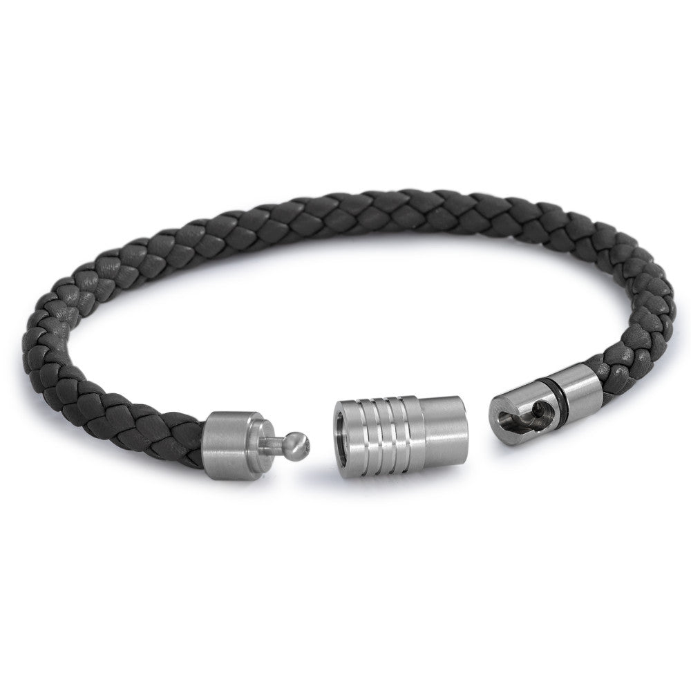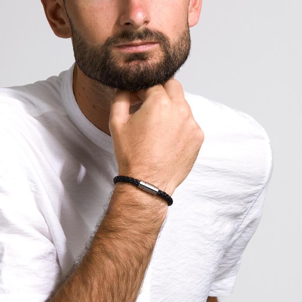 This stylish bracelet features a braided black leather band paired with a sleek stainless steel clasp, combining durability and elegance. Perfect for everyday wear or special occasions, it adds a modern, masculine touch to any outfit. Comfortable and timelessly designed.