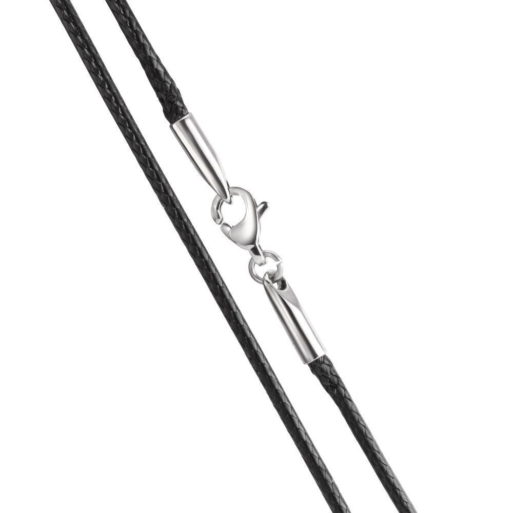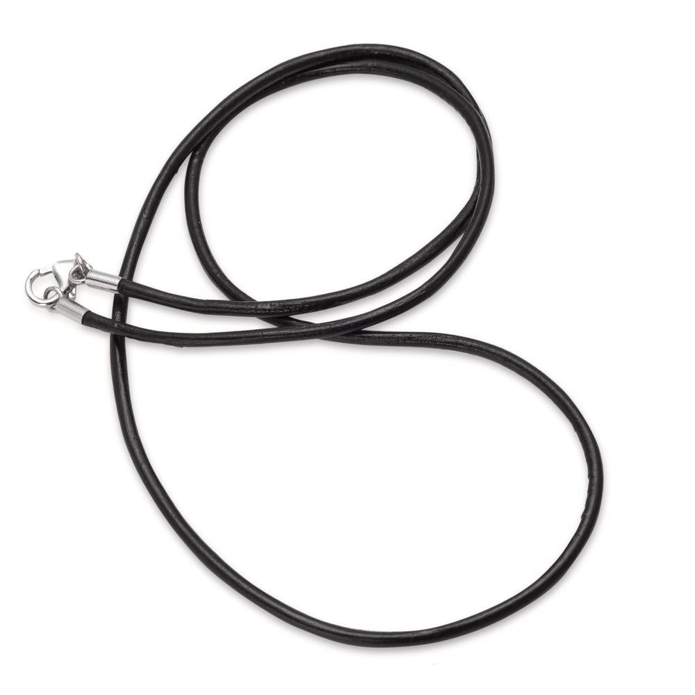This women's necklace combines genuine leather and stainless steel for a stylish and durable accessory. Its sleek black leather cord pairs perfectly with the polished stainless steel clasp, offering a timeless and versatile addition to any outfit. Perfect for everyday wear.
