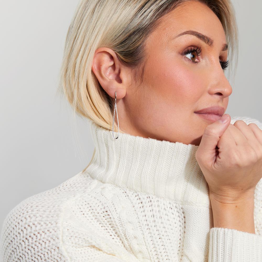 Elegant women's drop earrings crafted in 18K white gold, featuring a sleek and delicate teardrop design. One side is adorned with shimmering diamonds, adding a touch of sparkle and sophistication. Perfect for enhancing any outfit with timeless luxury and style.