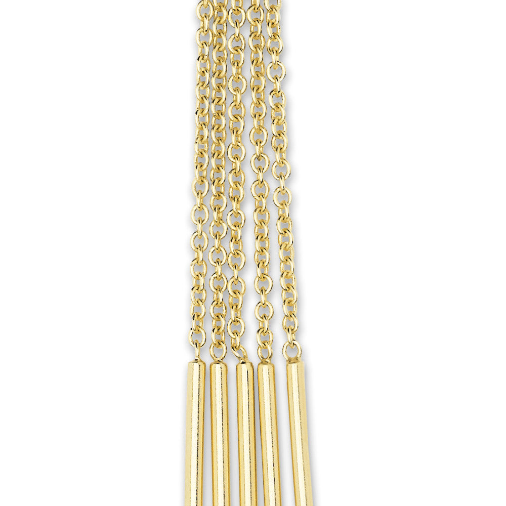 Elegant bronze women's drop earrings featuring delicate chain tassels with sleek bar accents. Lightweight and stylish, perfect for adding a touch of sophistication to any outfit. Ideal for both casual wear and special occasions, these earrings blend timeless design with modern charm.