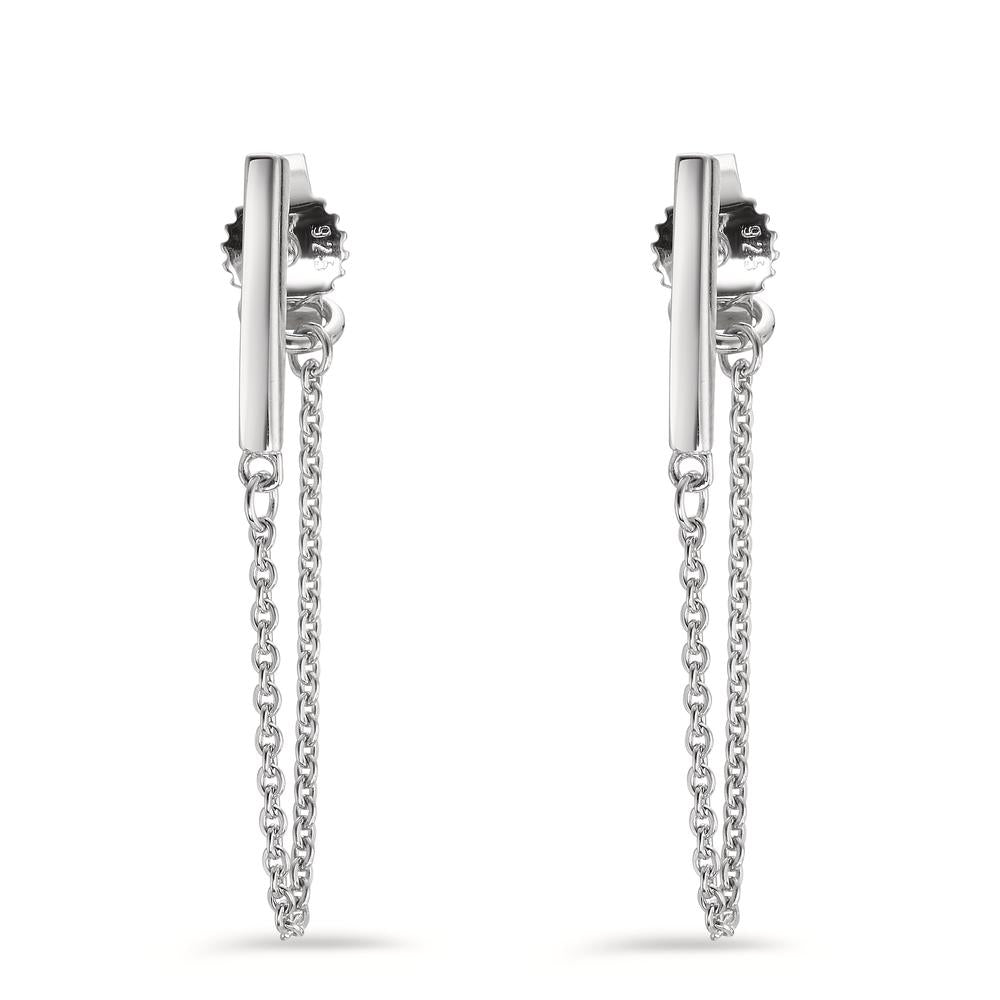 Elegant silver women's drop earrings featuring a sleek bar design connected to a delicate chain. Crafted from high-quality silver, these lightweight earrings offer a modern and minimalist style perfect for any occasion, adding a subtle touch of sophistication to your look.