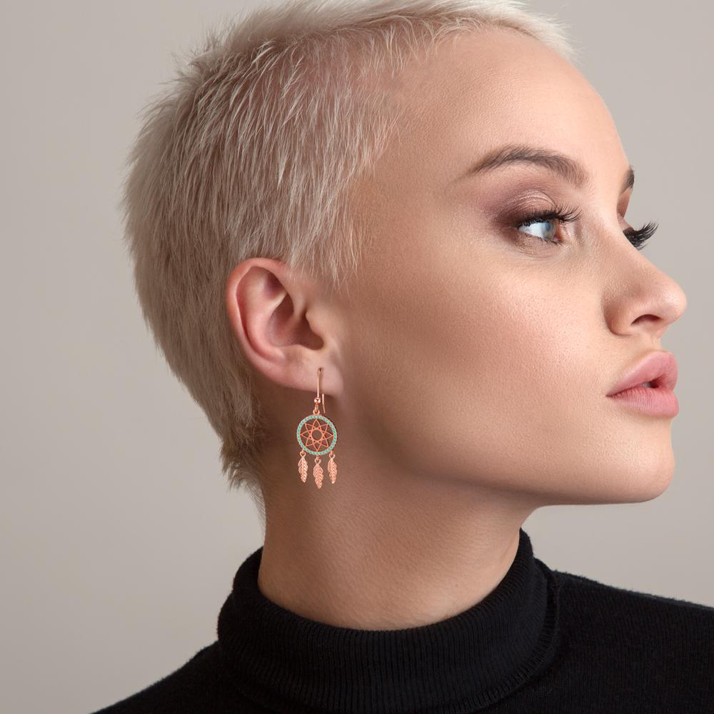 Drop Earrings Silver [synth. Stein] Rose Gold plated Dreamcatcher