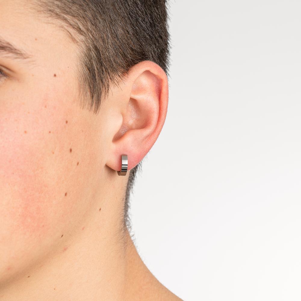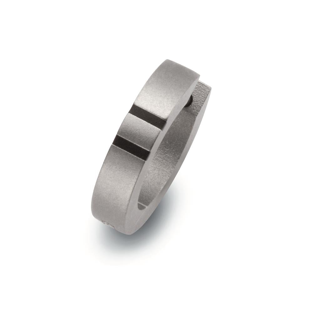 This men's hinged hoop earring is crafted from durable titanium, offering a sleek and modern design. Its matte finish with subtle groove accents adds a stylish and masculine touch. Lightweight and comfortable, it's perfect for everyday wear or special occasions.