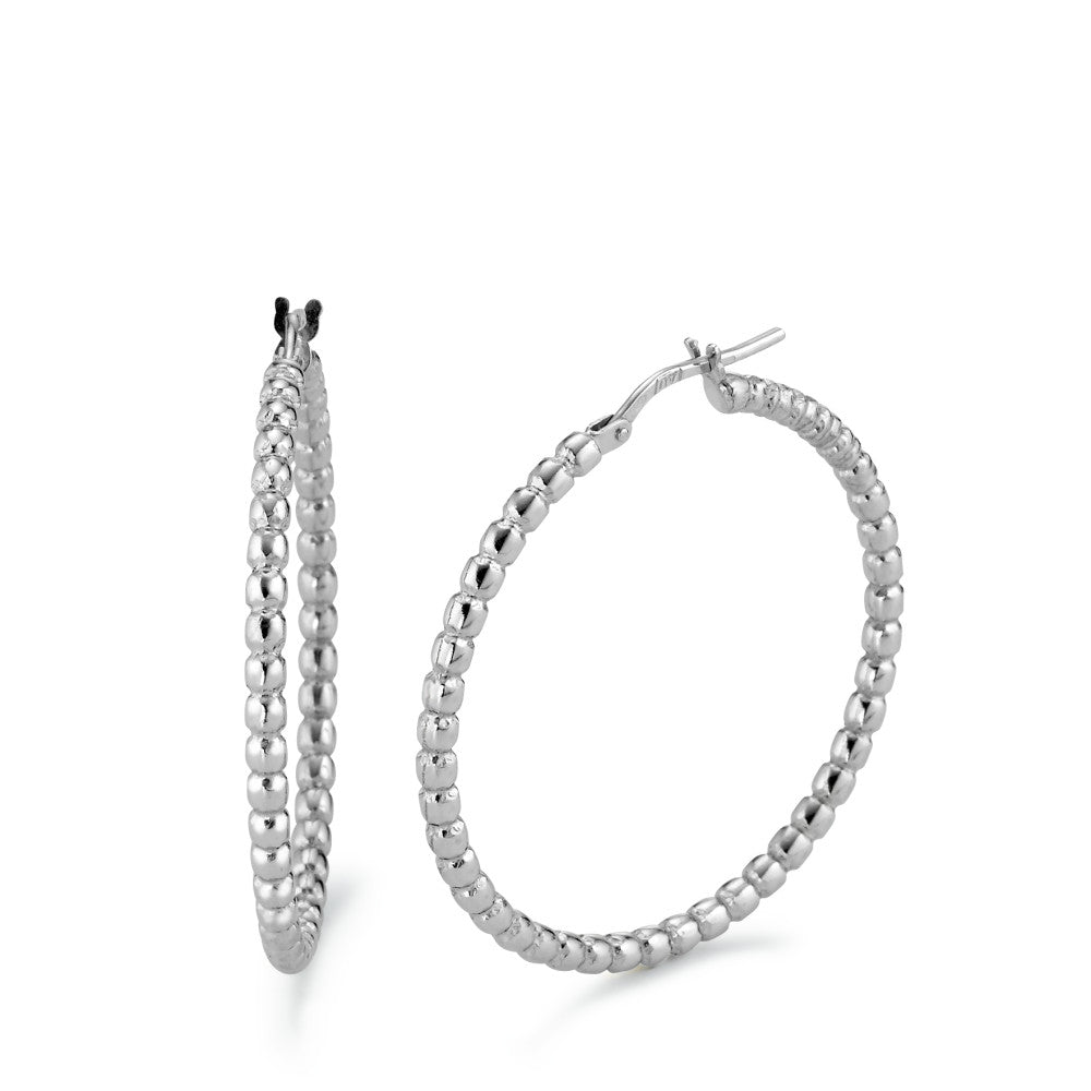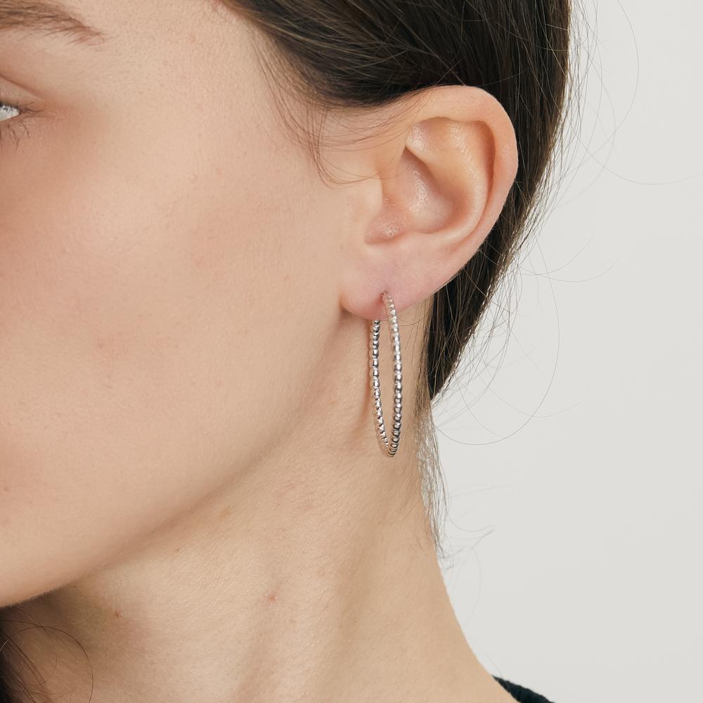 Elegant silver hoop earrings for women, featuring a stylish beaded design that adds texture and shine. Perfect for everyday wear or special occasions, these lightweight and durable creoles effortlessly complement any outfit, enhancing your look with timeless sophistication.
