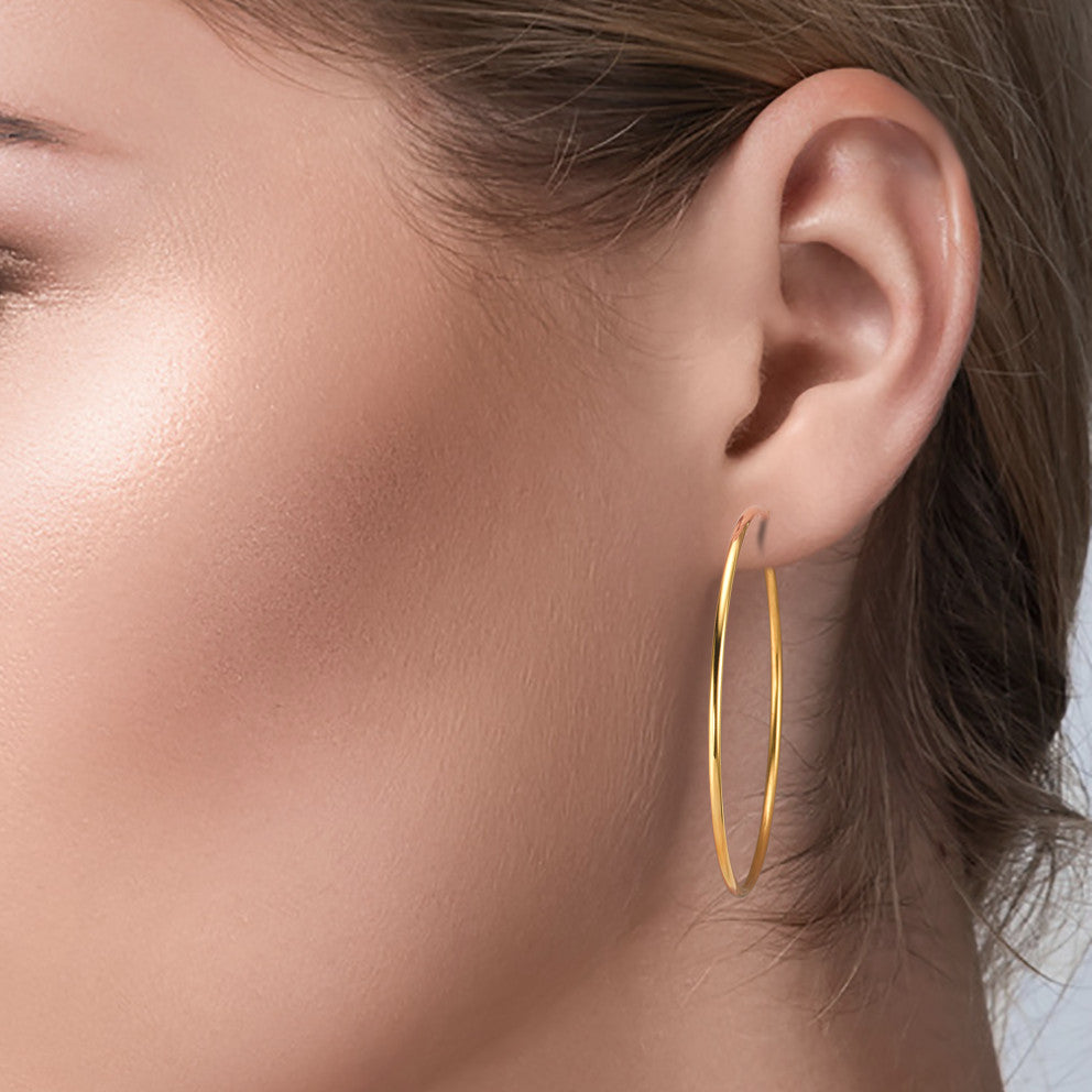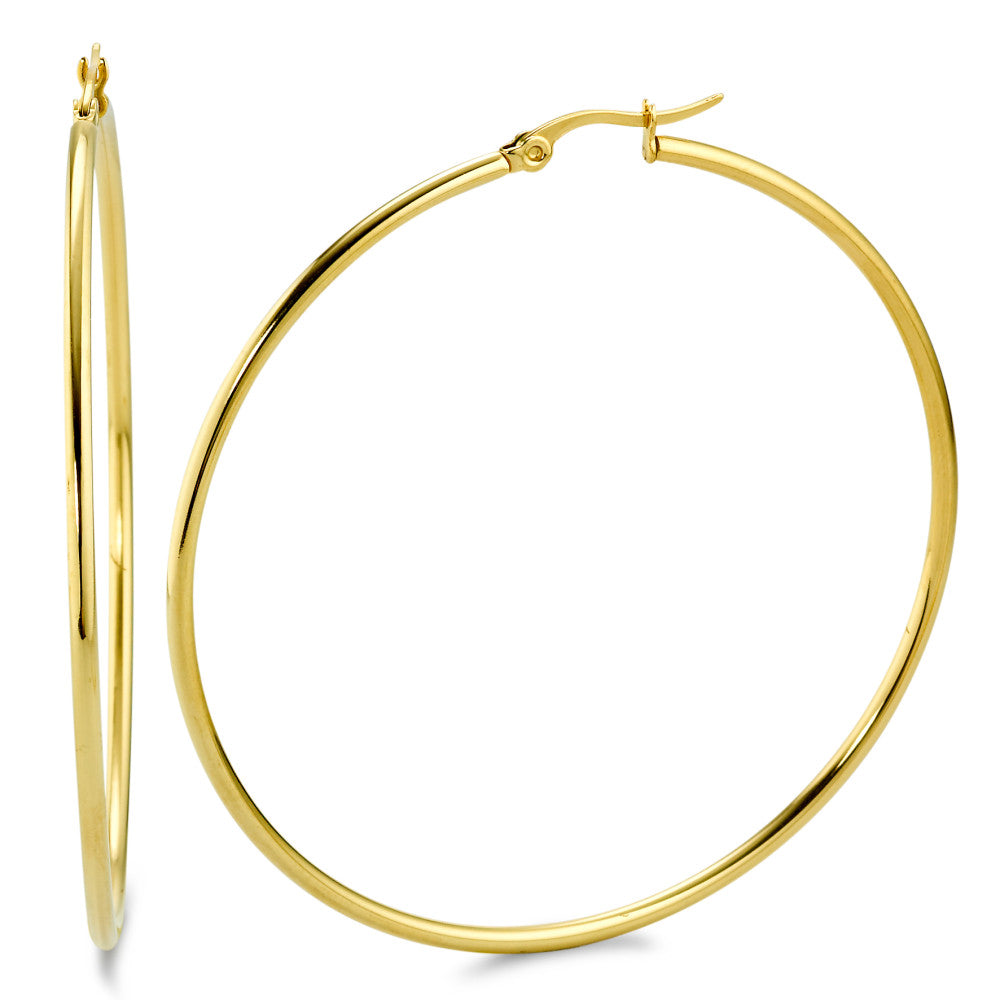 These women's hoop earrings are crafted from durable stainless steel with a polished gold finish. Their classic round shape offers a timeless and elegant look, perfect for everyday wear or special occasions. Lightweight and hypoallergenic, they ensure comfort and style all day long.