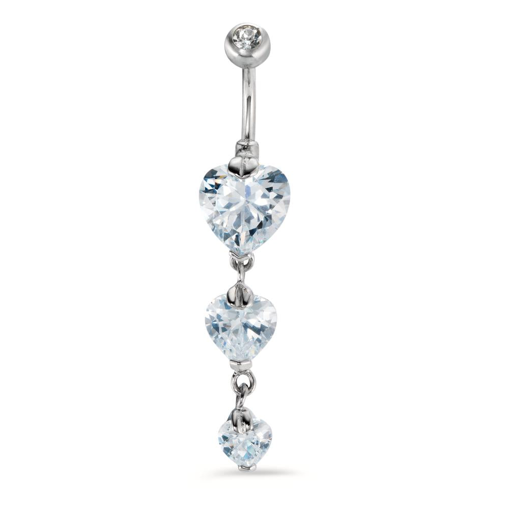 Elegant women's belly button piercing made of stainless steel, featuring three sparkling heart-shaped crystals that cascade beautifully. This stylish and durable piece adds a touch of romance and sparkle to any outfit, perfect for everyday wear or special occasions.