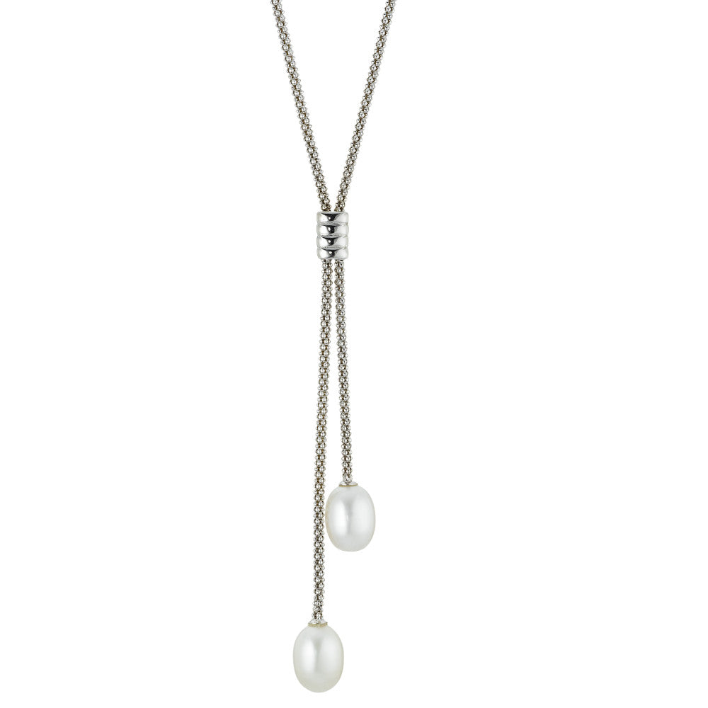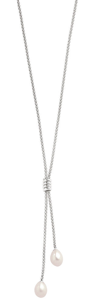 Elegant women's necklace made of silver, featuring a delicate chain with two lustrous pearls hanging at the ends. This sophisticated collier combines timeless design and modern charm, perfect for enhancing any outfit with a touch of refined elegance.