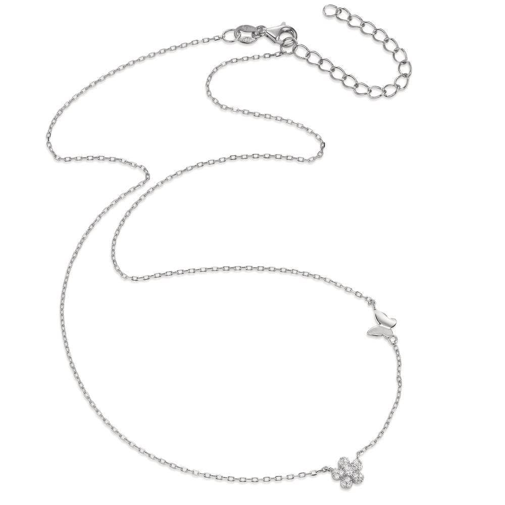 Necklace Silver Zirconia Rhodium plated Flower 40-45 cm