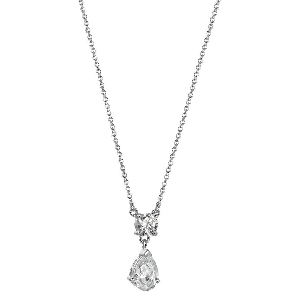 Elegant women's necklace crafted from high-quality silver, featuring dazzling cubic zirconia stones. The delicate design includes a round and a pear-shaped zirconia pendant, creating a timeless sparkle perfect for any occasion. Adds a touch of sophistication and charm.