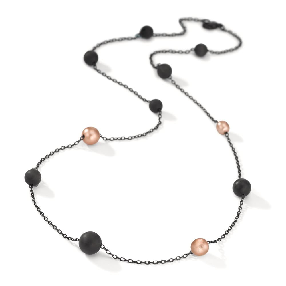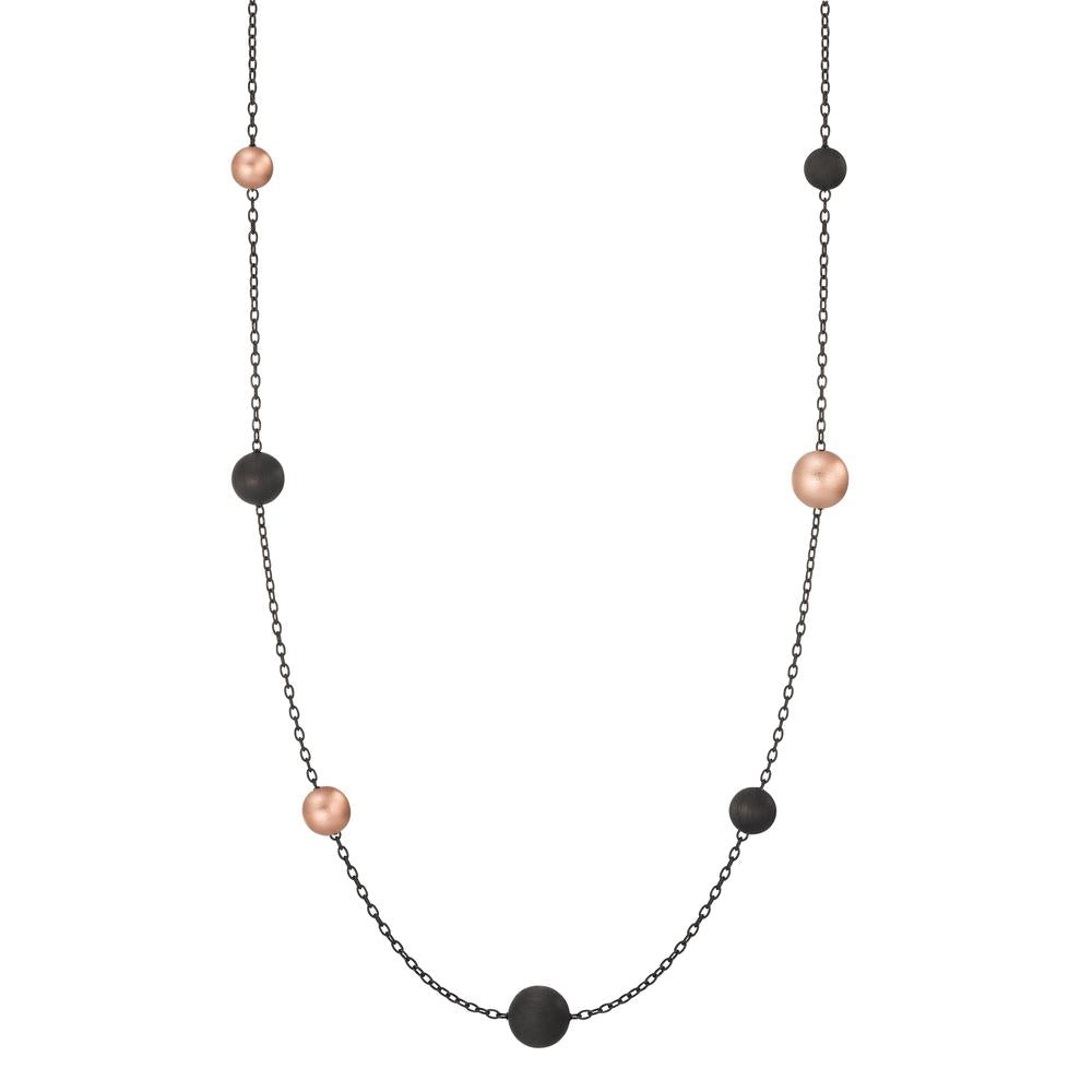 Elegant women's necklace crafted from durable stainless steel, lightweight carbon, and aluminum beads in contrasting matte black and rose gold tones. This striking piece combines modern materials with a minimalist design for a stylish, contemporary look. Perfect for any occasion.