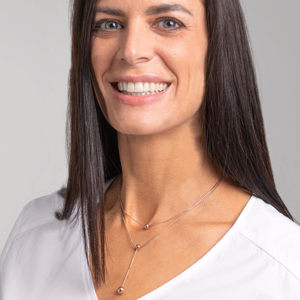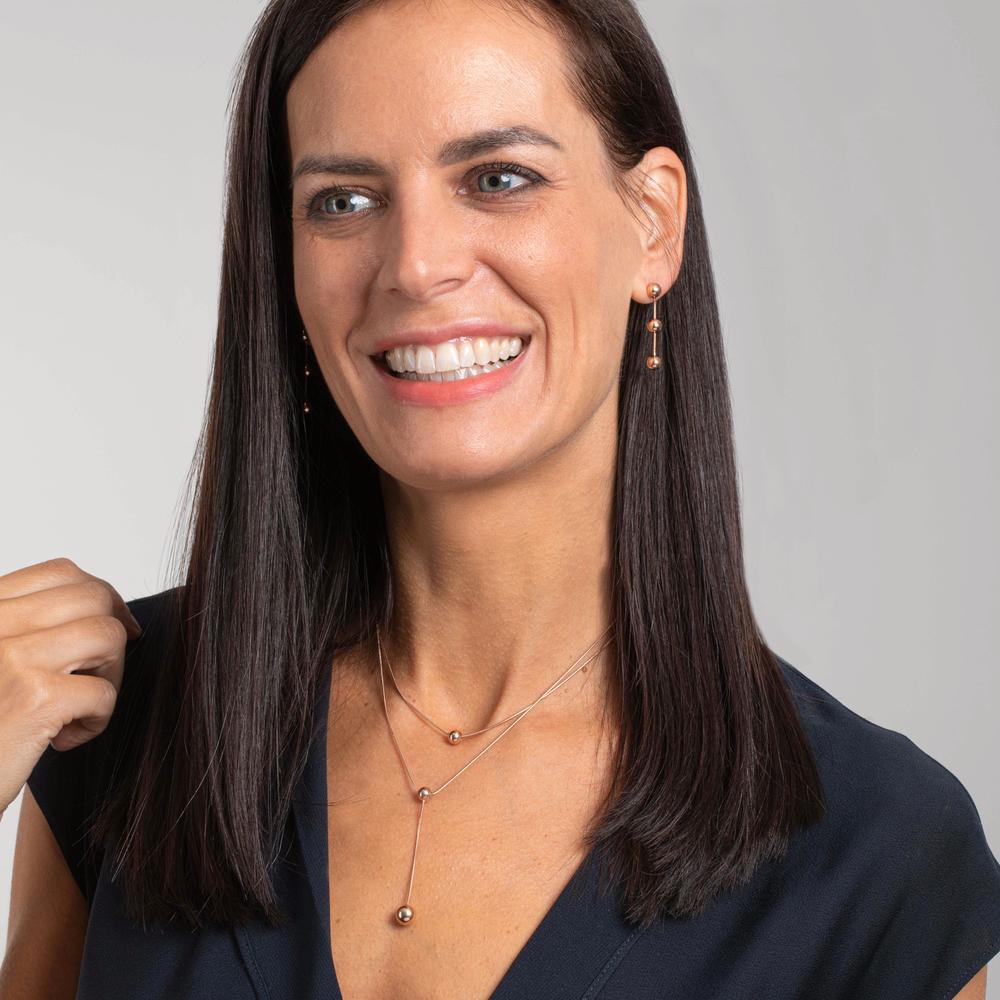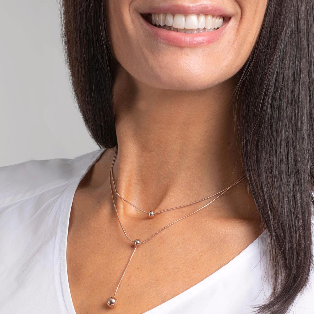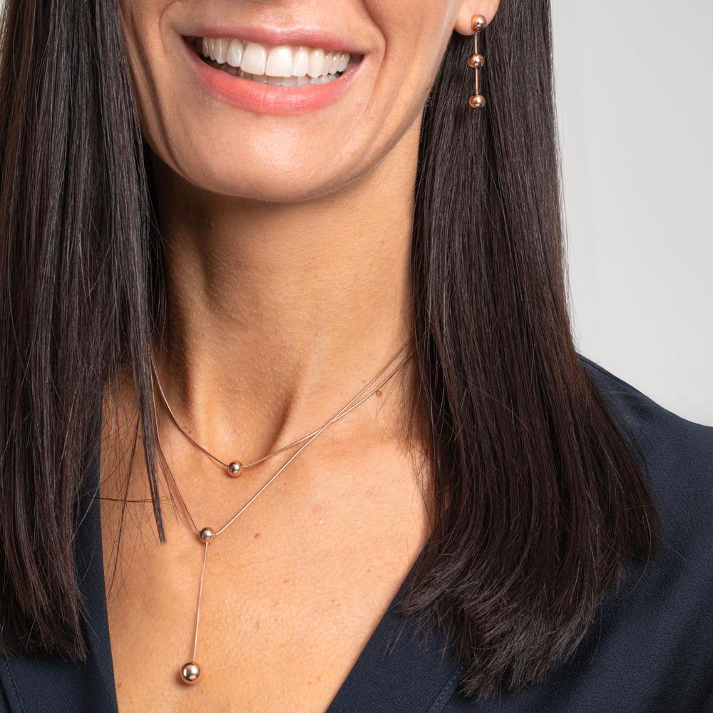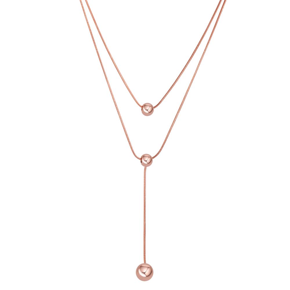 Elegant women's necklace crafted from durable stainless steel with a rose gold finish. Features a layered design with three polished beads for a modern, stylish look. Perfect for adding a touch of sophistication to any outfit, suitable for both casual and formal occasions.
