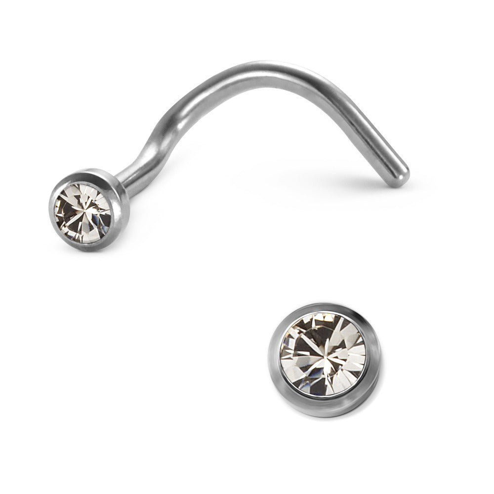 Elegant women's nose stud made of lightweight, durable titanium featuring a sparkling crystal. Hypoallergenic and perfect for sensitive skin, this nose stud combines subtle shine with long-lasting comfort for everyday wear. A stylish, classy addition to your jewelry collection.
