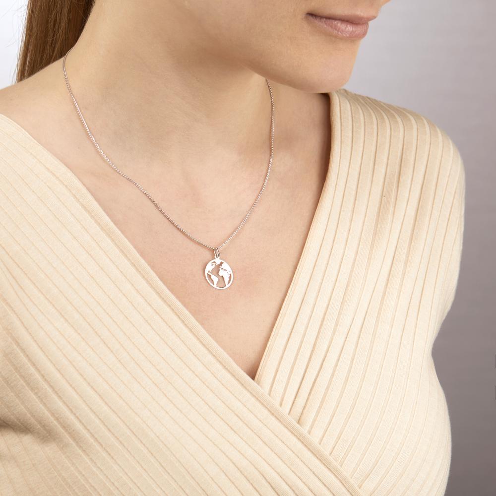 Elegant ladies' pendant crafted from 585 white gold, featuring a delicately cut-out globe design. This timeless piece symbolizes unity and adventure, making it a perfect accessory for everyday wear or special occasions. Lightweight and polished for a brilliant shine.
