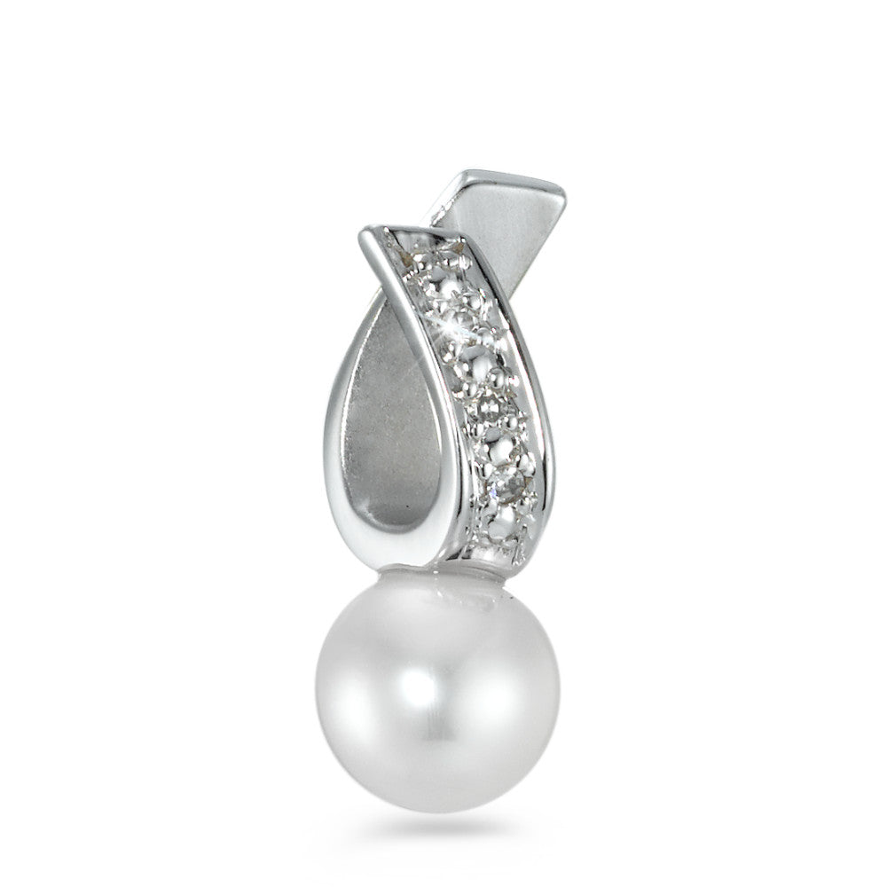 Pendant 18k White Gold Diamond 0.015 ct, w-si Freshwater pearl White, 6 mm