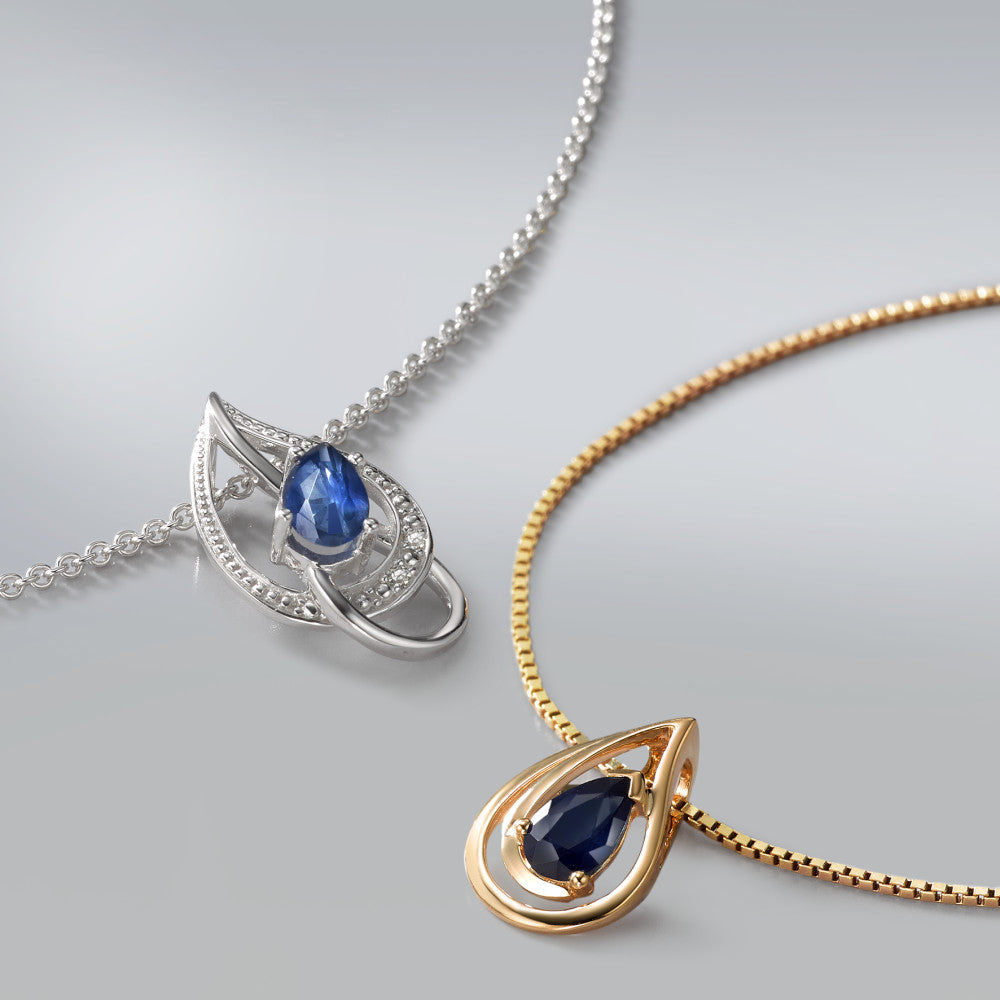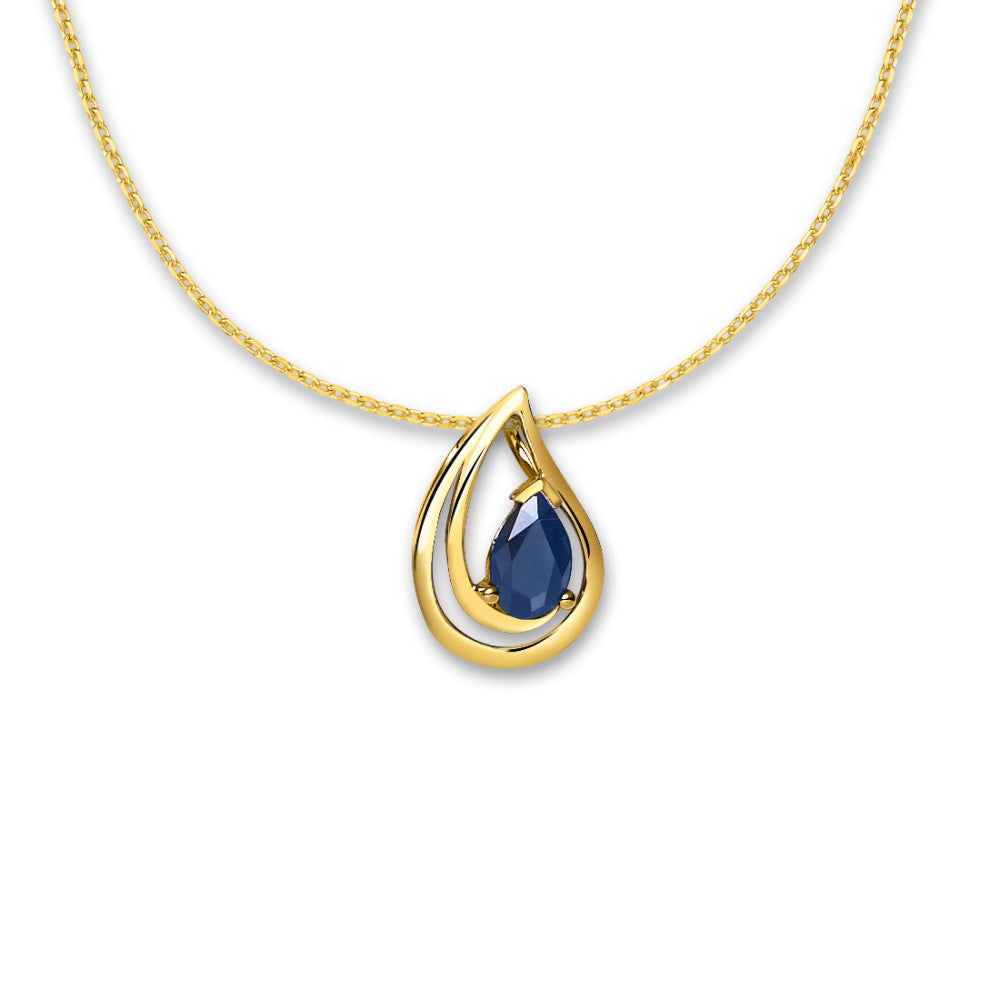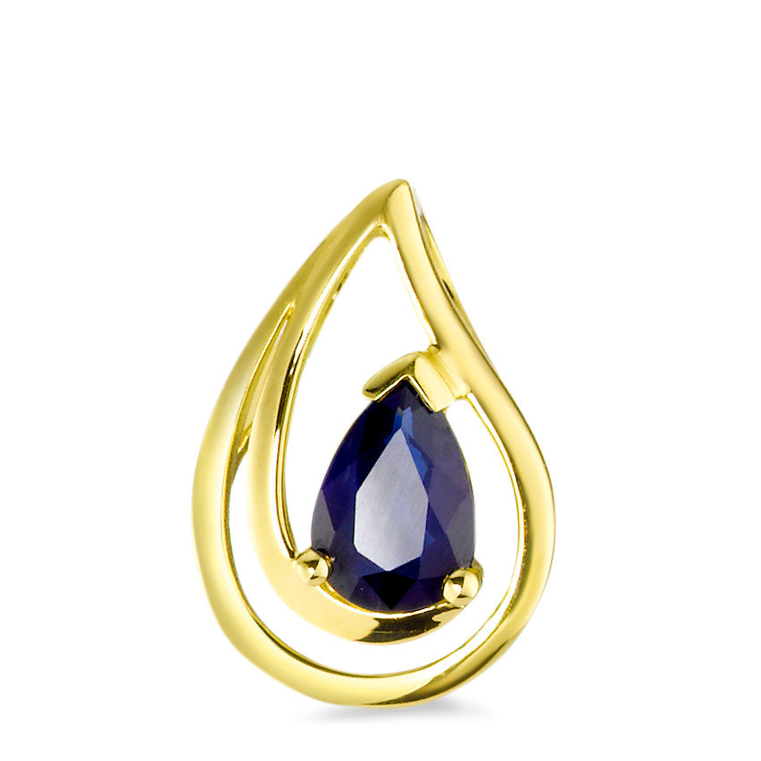 Elegant women's pendant crafted from 18K yellow gold, featuring a stunning pear-shaped deep blue sapphire. This timeless piece combines classic design with vibrant color, perfect for adding a touch of sophistication to any outfit or special occasion.