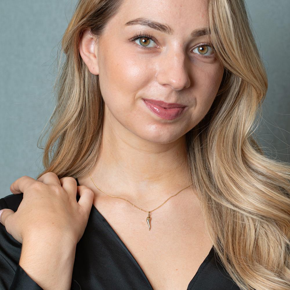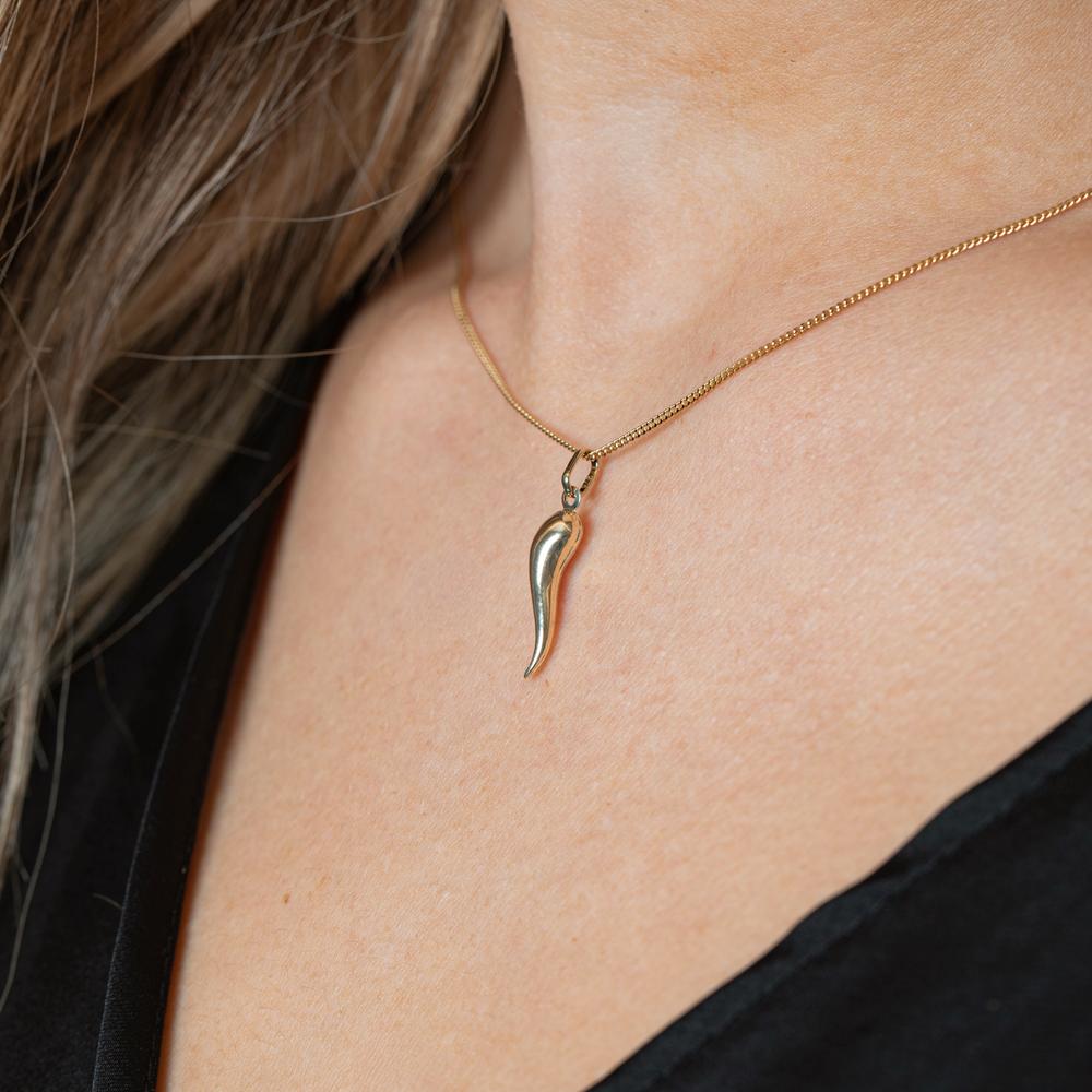 This elegant pendant is crafted from 375 yellow gold, featuring a sleek, curved design that adds a touch of sophistication to any outfit. Perfect for everyday wear or special occasions, it combines timeless style with high-quality craftsmanship. A beautiful gift choice!