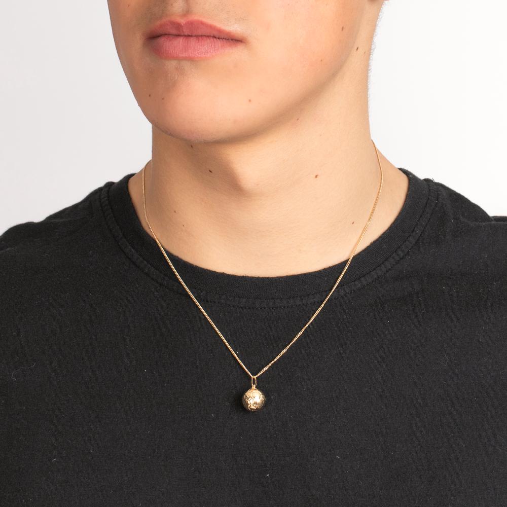 Men's pendant made of 375 yellow gold, designed as a detailed soccer ball. Perfect for football enthusiasts, this elegant and timeless accessory adds a sporty yet classy touch to any outfit. Ideal gift for sports lovers and collectors alike.