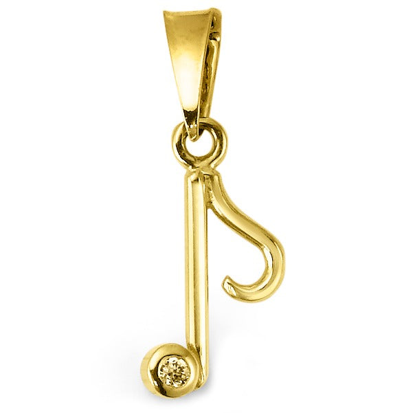 Delicate pendant crafted from 375 yellow gold, shaped as a musical note. Adorned with a sparkling zirconia stone for added elegance. Perfect for music lovers seeking a subtle yet stylish accessory. A timeless piece to enhance any outfit.