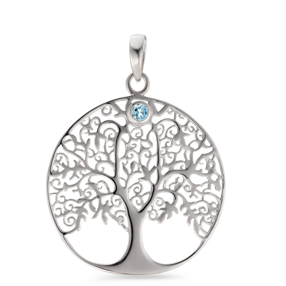 Pendant Silver Topaz Blue Rhodium plated Tree Of Life Ø30 mm