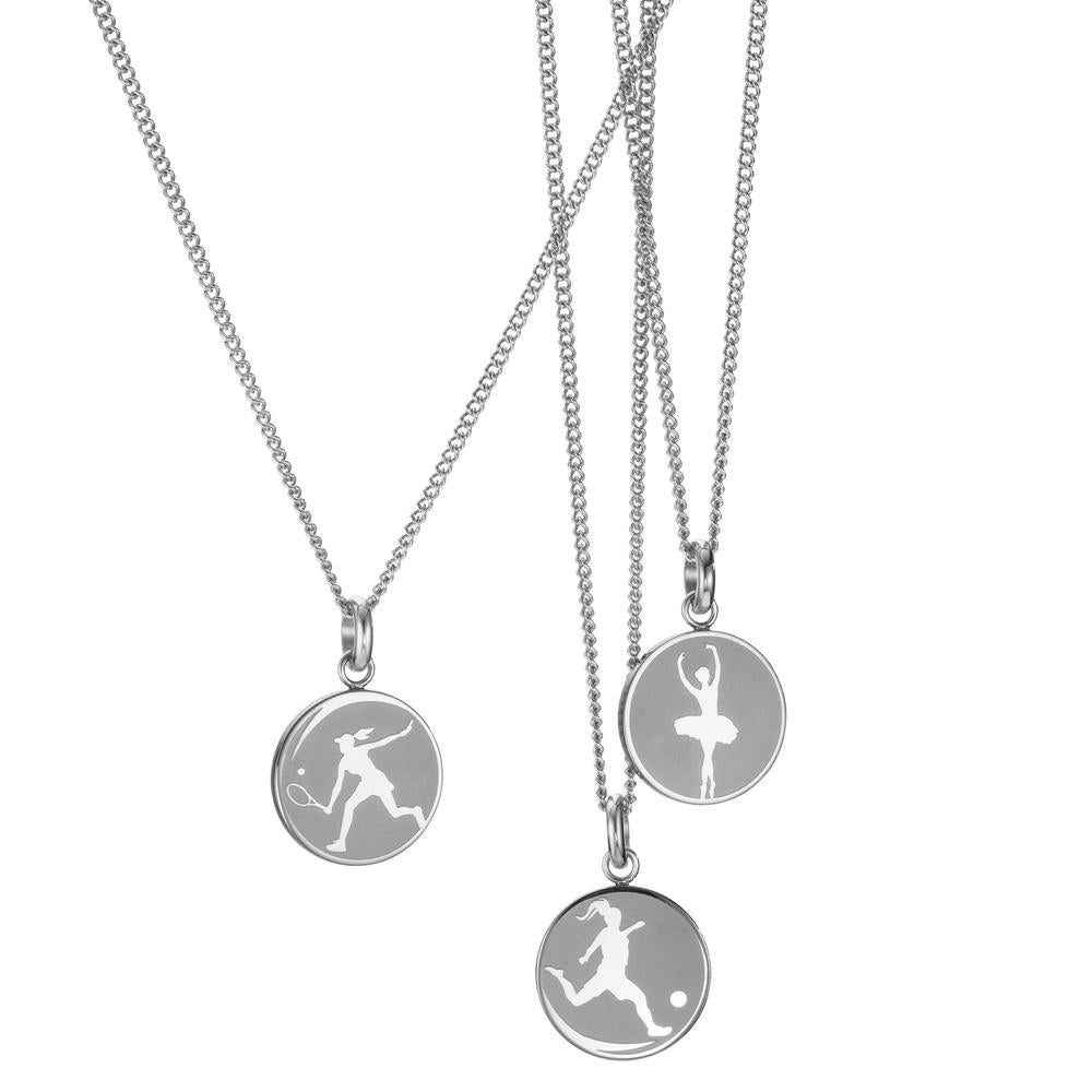This elegant ladies' pendant is crafted from durable stainless steel and features a stylish tennis player silhouette. Its polished finish and modern design make it a perfect accessory for sports enthusiasts and fashion lovers alike. A chic and meaningful piece for everyday wear.