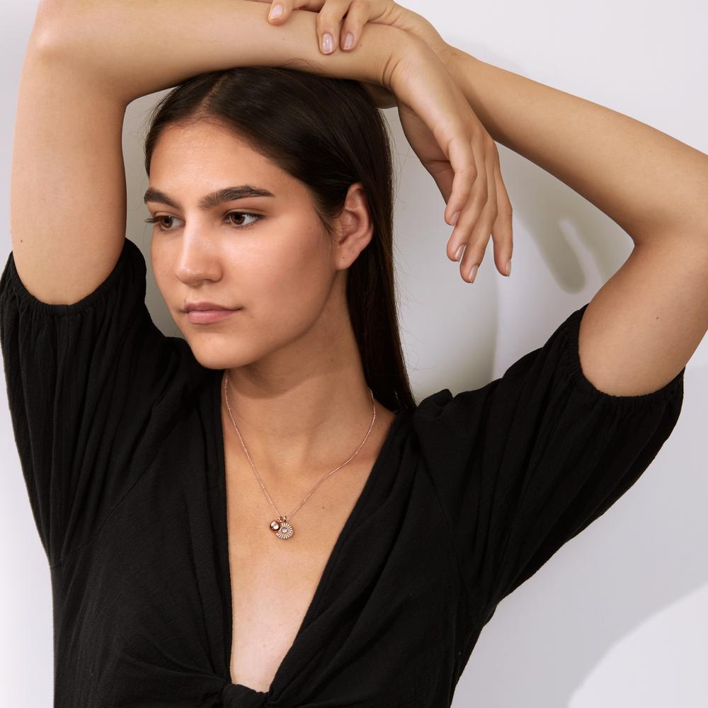 This elegant women's pendant is crafted from durable stainless steel with a rose gold finish. Featuring a radiant sunburst design centered around a sparkling cubic zirconia, it adds a touch of sophistication and sparkle to any outfit. Perfect for everyday wear or special occasions.