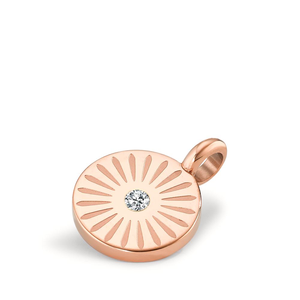 Pendant Stainless steel Zirconia Rose IP coated Ø11 mm