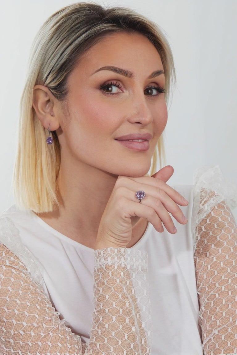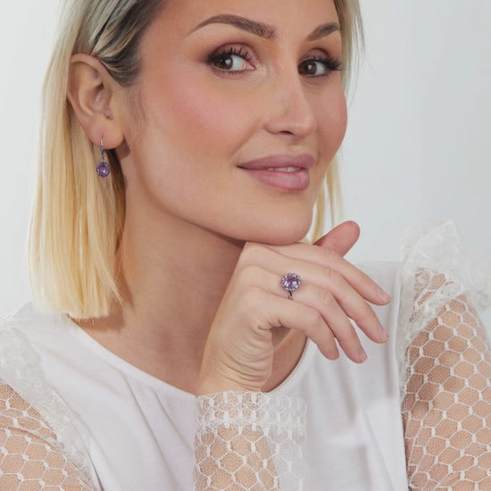 Ring 18k White Gold Amethyst Violet, Sapphire Violet, 18 Stones