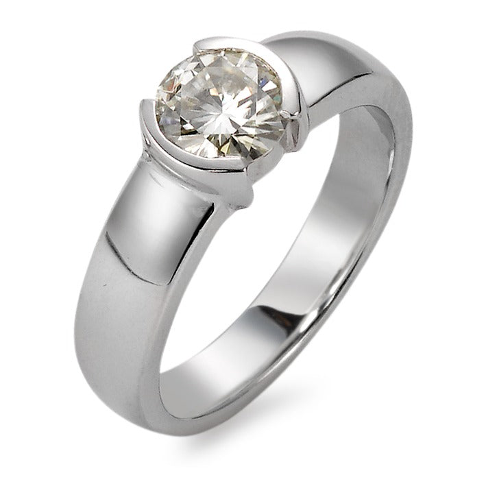 Elegant women's ring crafted from 18K white gold (750). Featuring a dazzling moissanite stone that offers exceptional brilliance and fire, this ring combines timeless design with modern luxury. Perfect for any occasion or as a meaningful gift.