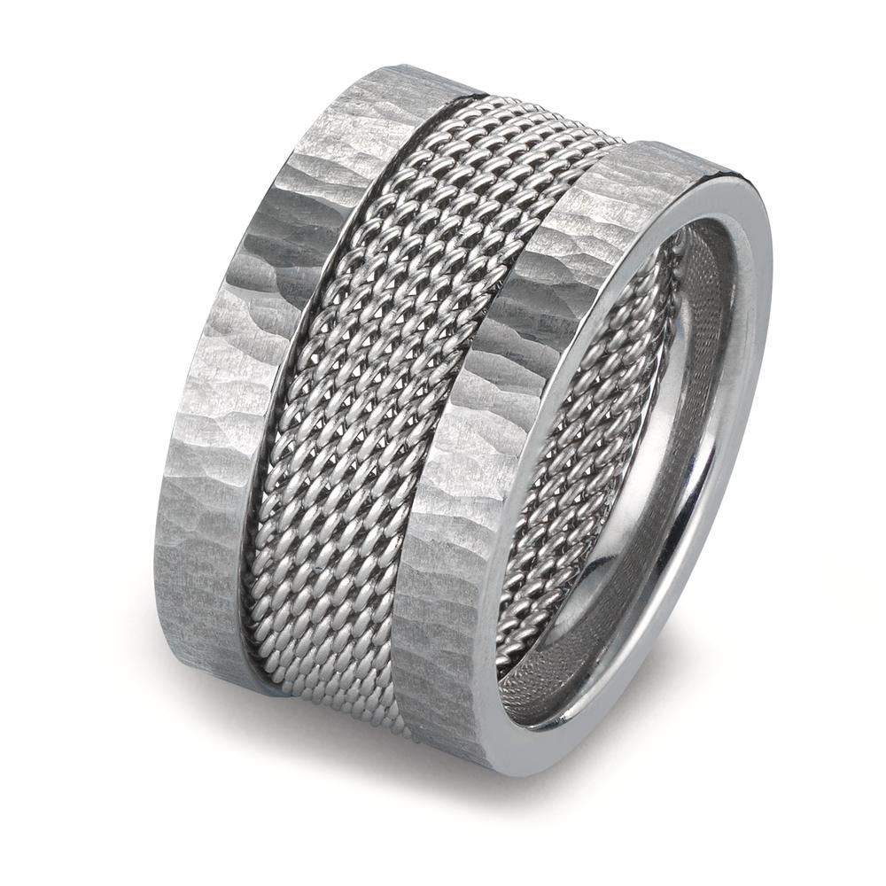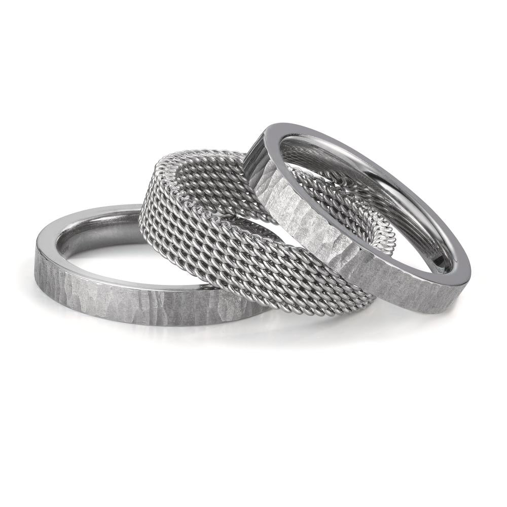 This elegant women's ring set features a unique combination of hammered and mesh textures in sleek silver-tone. Crafted for a modern and stylish look, it's perfect for adding a touch of sophistication to any outfit. Durable, versatile, and eye-catching jewelry for everyday wear.