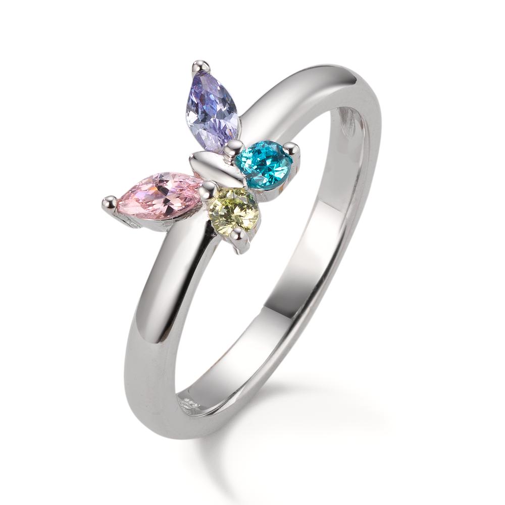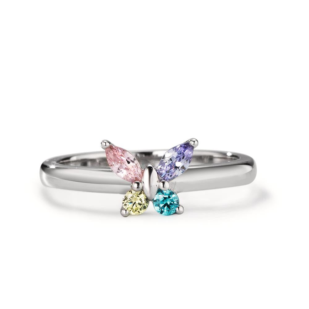 Ring Silver Zirconia 4 Stones Rhodium plated Butterfly