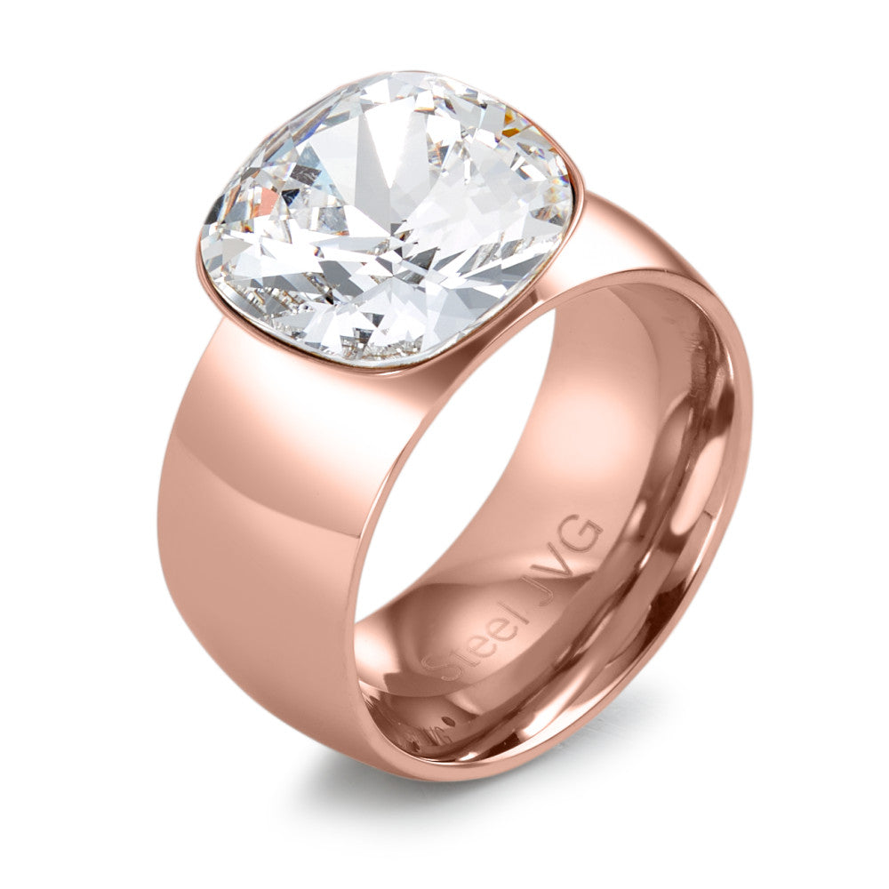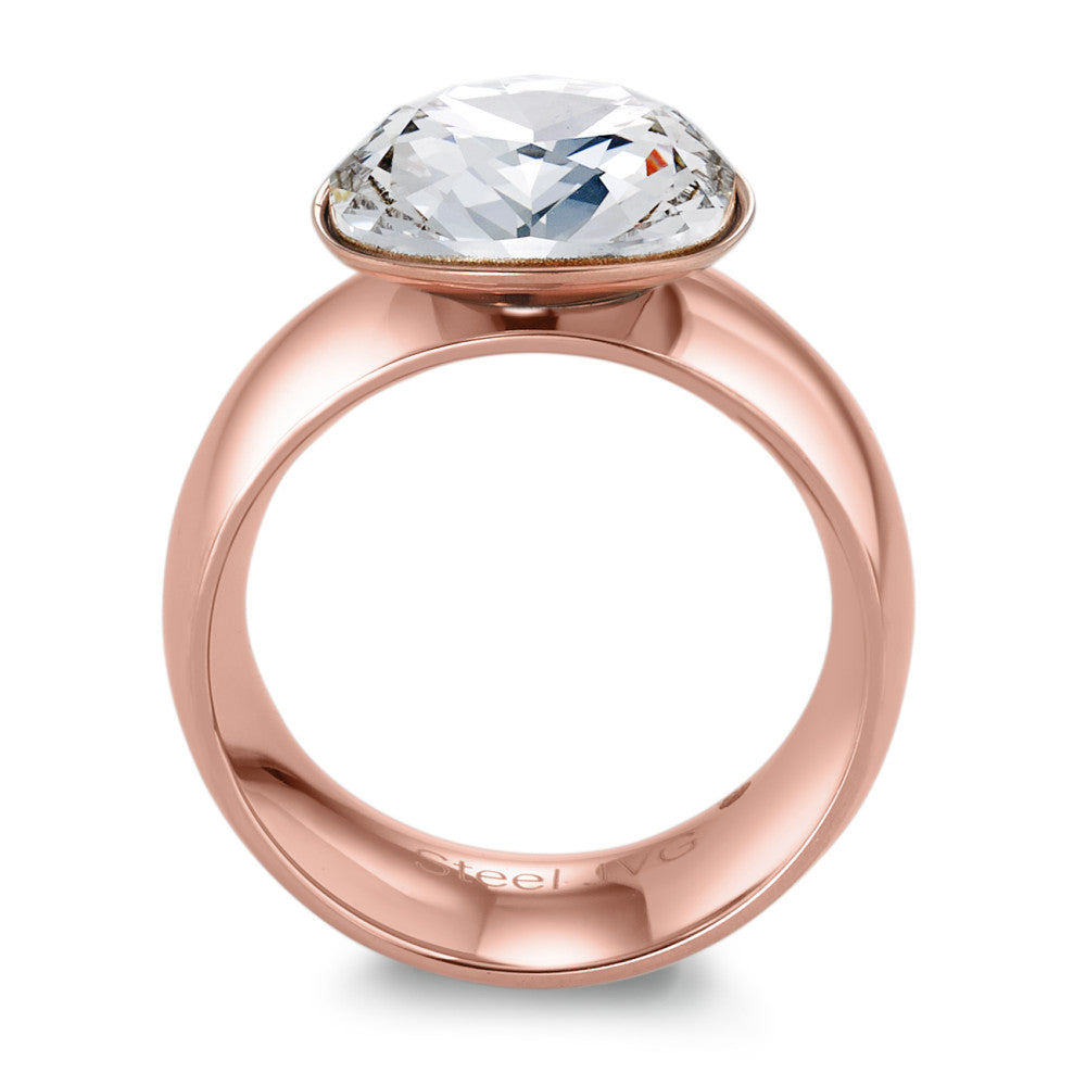 Elegant women's ring made of durable stainless steel with a stunning, sparkling cubic zirconia centerpiece. Its rose gold finish adds a warm, luxurious touch, perfect for daily wear or special occasions. A timeless piece combining quality and style seamlessly.