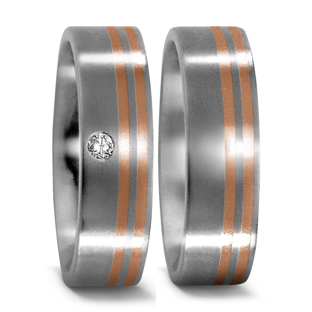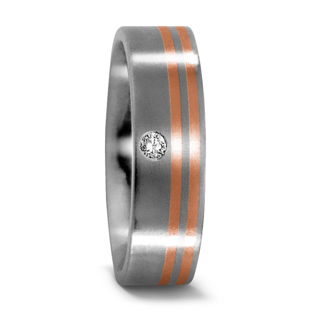 Ring Titanium, 18k Red Gold Diamond 0.03 ct, w-si