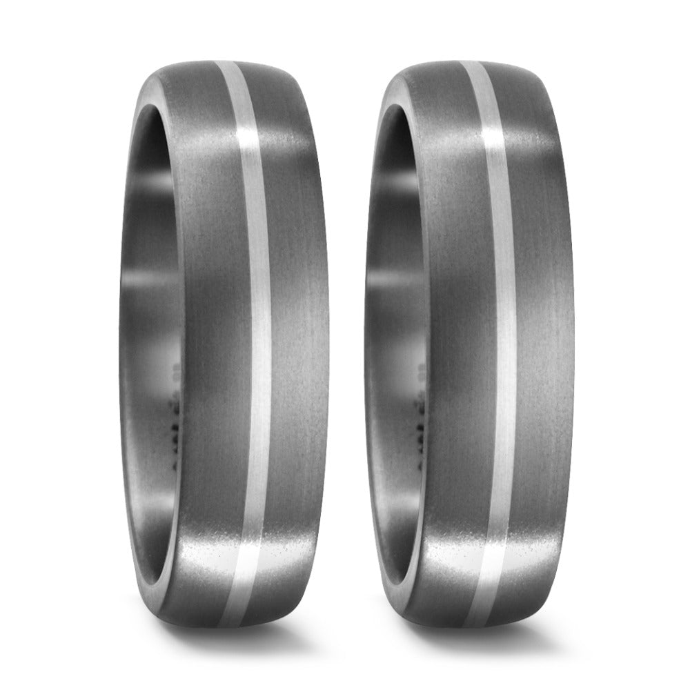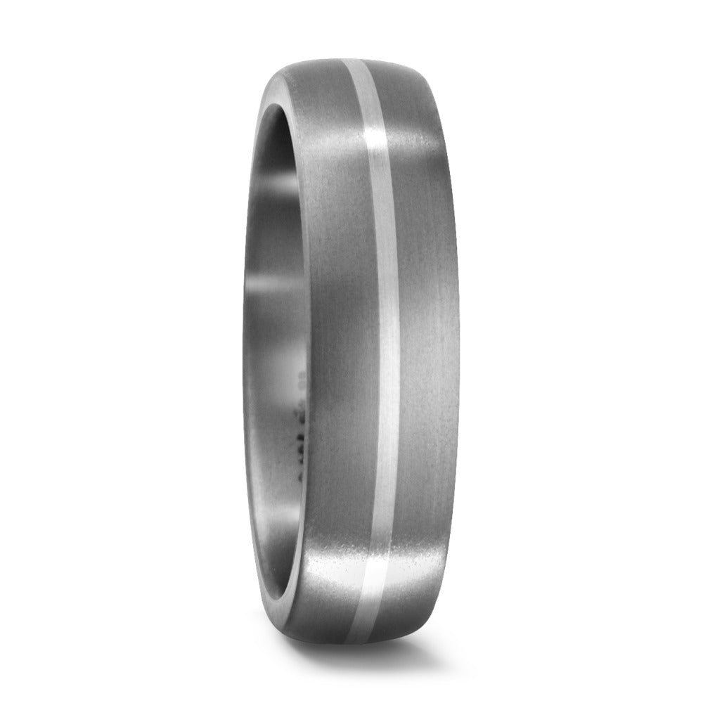 Stylish finger ring made of durable titanium with an elegant inlay of 750 white gold. This modern, matte-finished ring combines strength and sophistication, perfect for everyday wear or special occasions. Lightweight, comfortable, and uniquely designed for a timeless look.