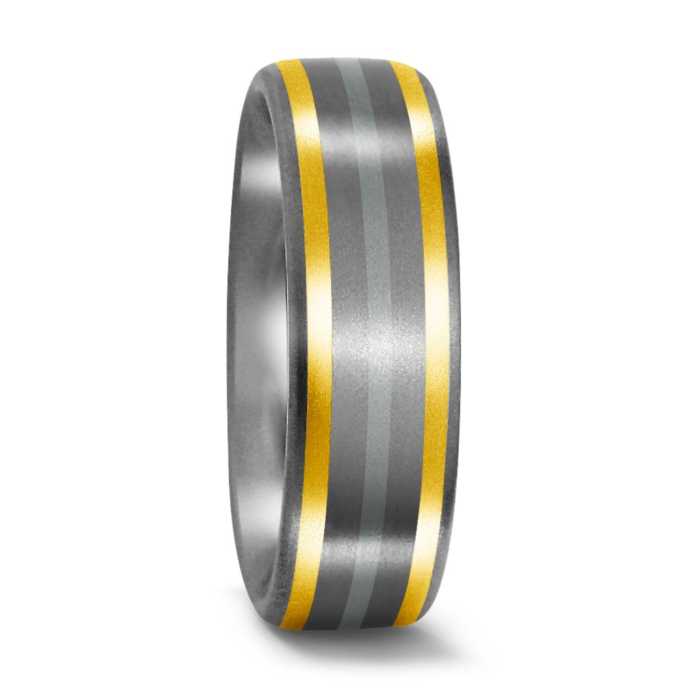 Elegant women's ring crafted from durable titanium, featuring striking 950 platinum accents and vibrant gold stripes. This stylish, modern design offers both strength and sophistication, perfect for everyday wear or special occasions. Lightweight, comfortable, and timelessly beautiful.