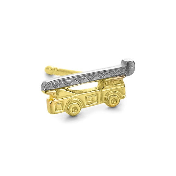 Men's single stud earring crafted from 18K yellow gold, designed in the shape of a fire truck. A unique and meaningful accessory, perfect for fire service enthusiasts or as a stylish, subtle statement piece. Durable and finely detailed for everyday wear.