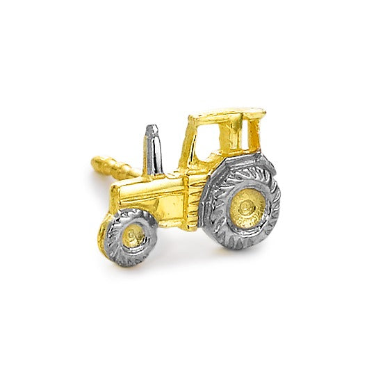 This men's stud earring features a detailed tractor design crafted from 18K yellow gold with silver accents on the wheels. Perfect for adding a unique touch to any outfit, this single earring combines rugged charm with high-quality craftsmanship.