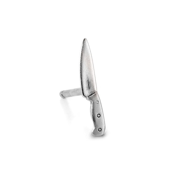 This men's silver stud earring features a unique knife design, crafted with fine detail for a bold and edgy look. Made from high-quality silver, it offers durability and style in a single piece. Perfect for adding a distinctive touch to any outfit.
