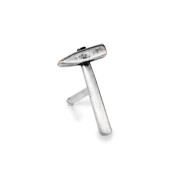 Men's single stud earring crafted from silver, designed in the shape of a hammer. This unique and stylish accessory combines rugged charm with minimalist elegance, perfect for adding a bold touch to everyday outfits or special occasions. Durable and lightweight for comfortable wear.