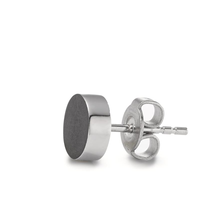 Stylish men's stud earring made from durable stainless steel. Featuring a sleek, round design with a dark, textured front for a modern, masculine look. Perfect for everyday wear, this single earring offers both comfort and long-lasting shine. Ideal for adding subtle edge to any outfit.