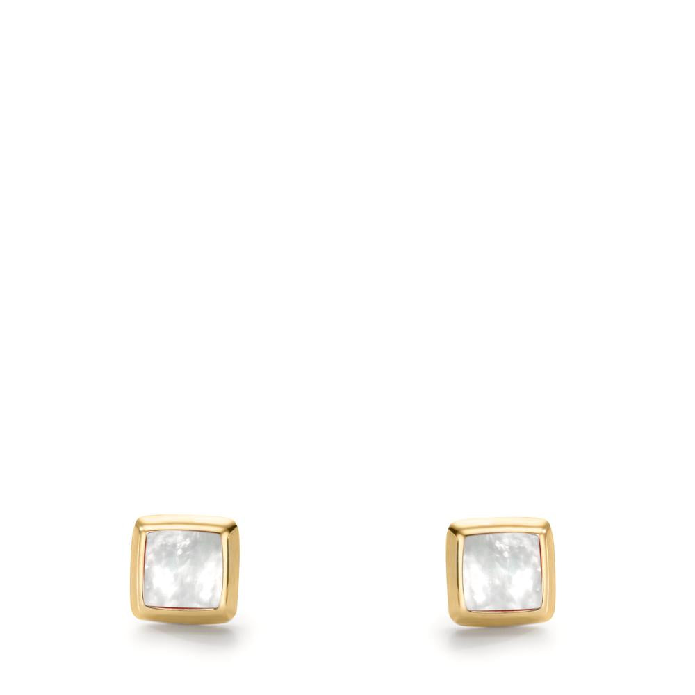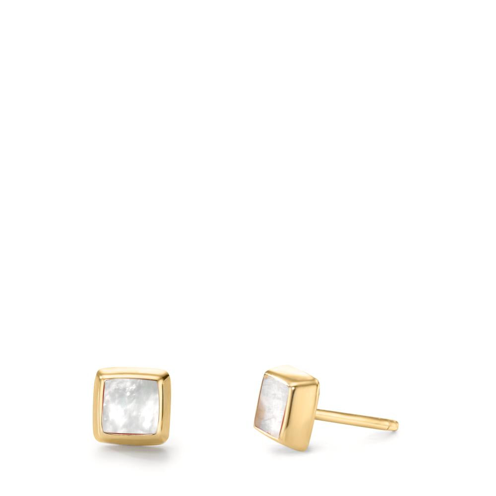 Elegant women's stud earrings crafted from 585 yellow gold, featuring radiant mother-of-pearl insets. These timeless accessories offer a subtle shimmer and refined style, perfect for both everyday wear and special occasions. A delicate, classic addition to any jewelry collection.