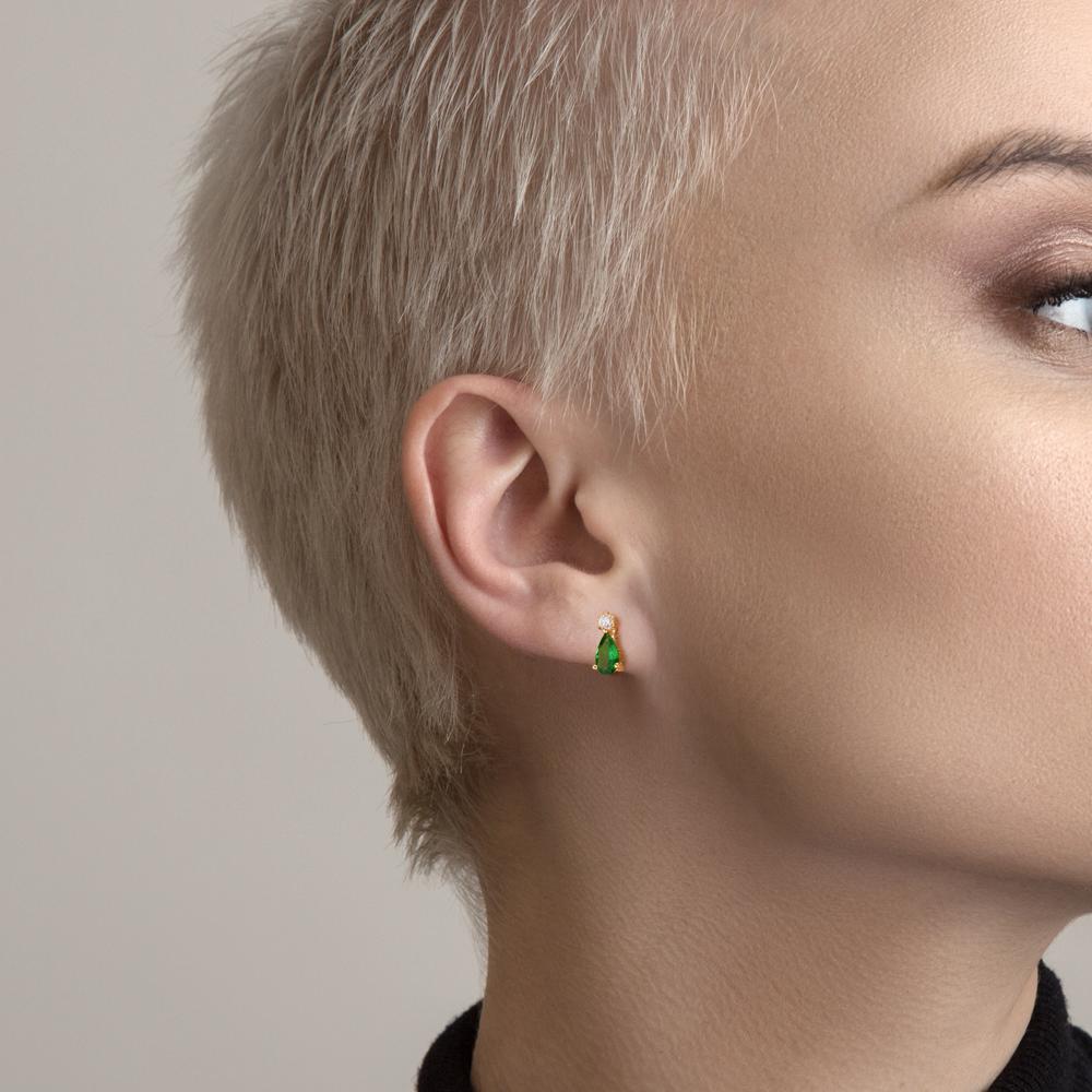 Stud earrings 18k Yellow Gold Garnet Green, 2 Stones, Diamond 0.05 ct, w-si