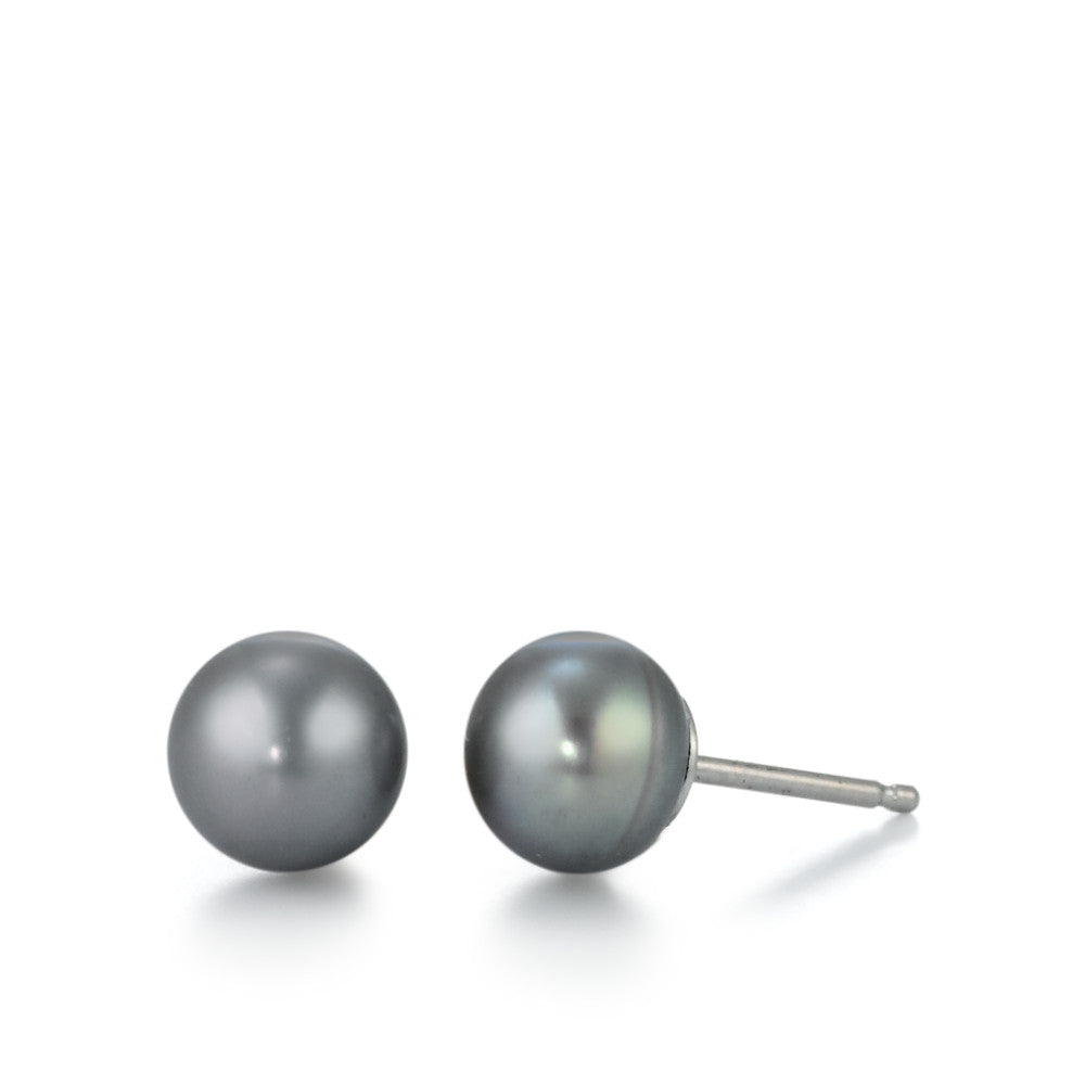 Elegant silver stud earrings featuring lustrous grey pearls. Perfect for everyday wear or special occasions, these timeless earrings add a subtle yet sophisticated touch to any outfit. Lightweight and comfortable, a classic accessory for every jewelry collection.
