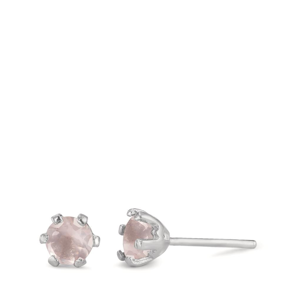 Stud earrings Silver Rose Quartz 2 Stones Rhodium plated Ø6.5 mm